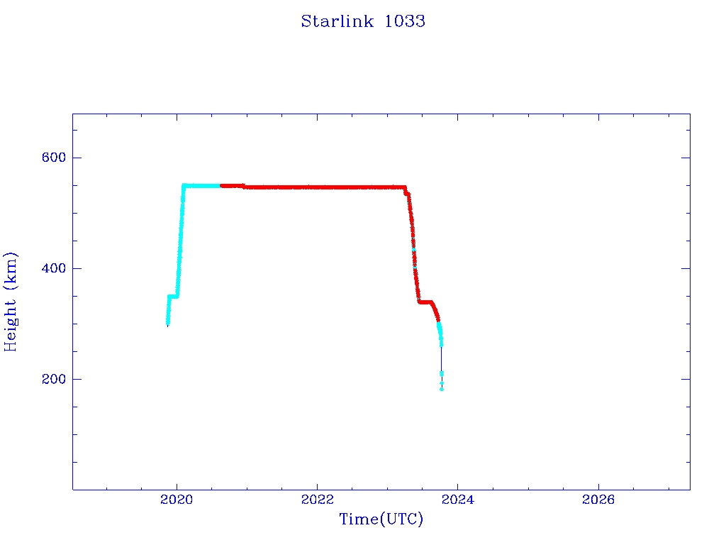 | Starlink 1033 | S44738 | R | 2019 Nov 11 | 2023 Aug 20? | 2023 Oct 8 |  |  |  |