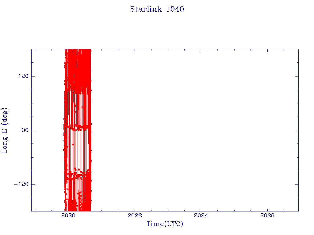 | Starlink 1040 | S44745 | F | 2019 Nov 11 | 2019 Dec 15? | 2020 Sep 2 |  |  |  |