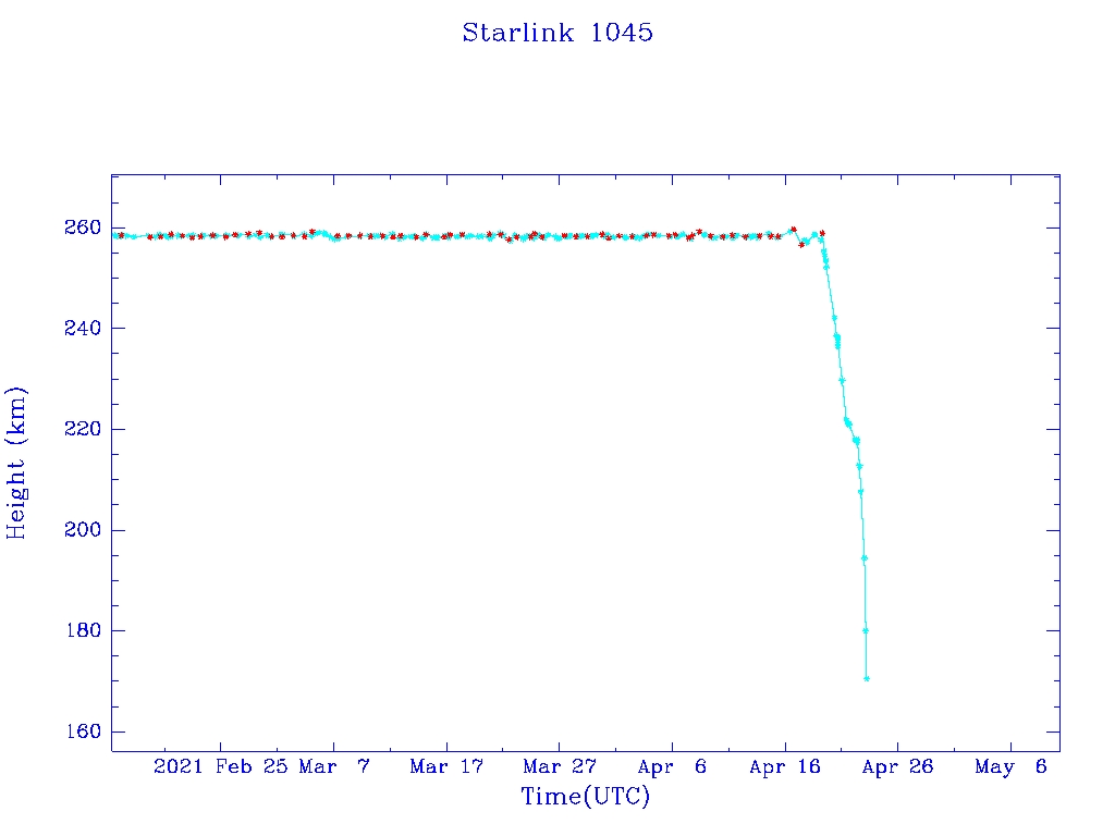 | Starlink 1045 | S44750 | R | 2019 Nov 11 | 2021 Apr 23 | 2021 Apr 23 |  |  |  |