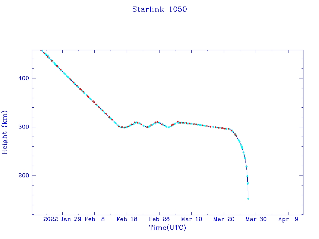 | Starlink 1050 | S44755 | R | 2019 Nov 11 | 2022 Mar 21 | 2022 Mar 27 |  |  |  |