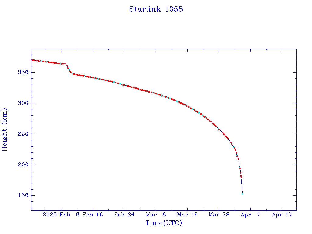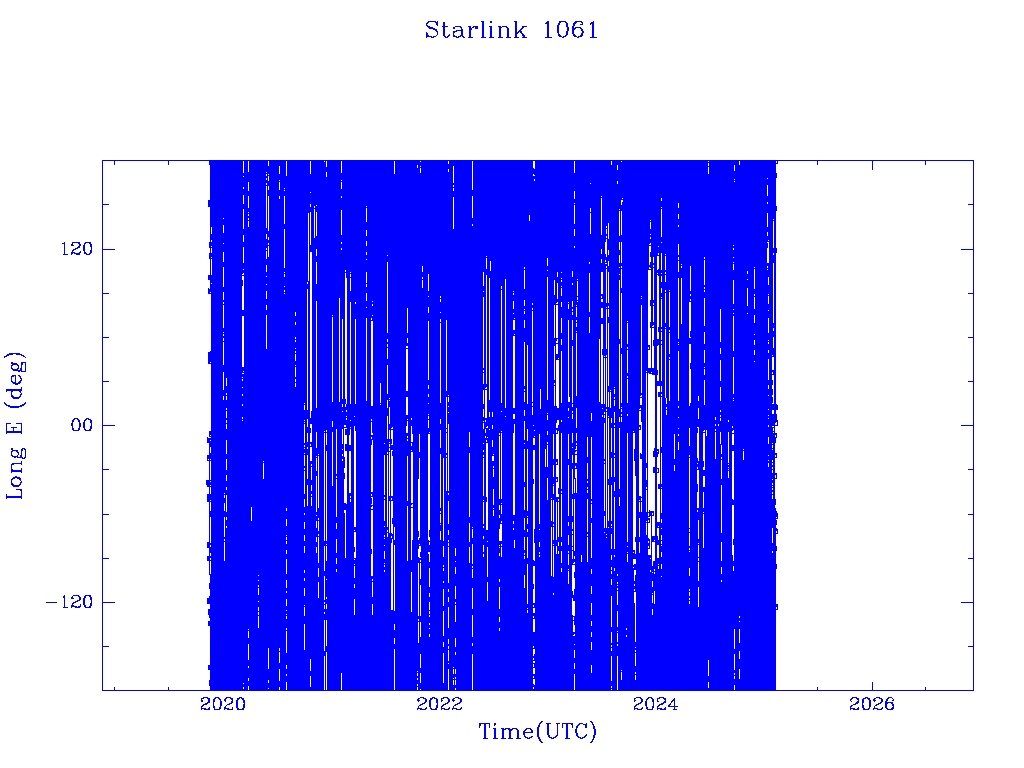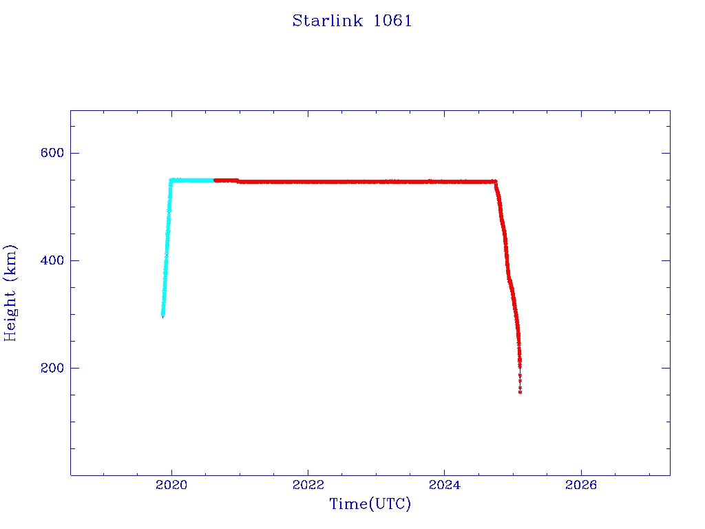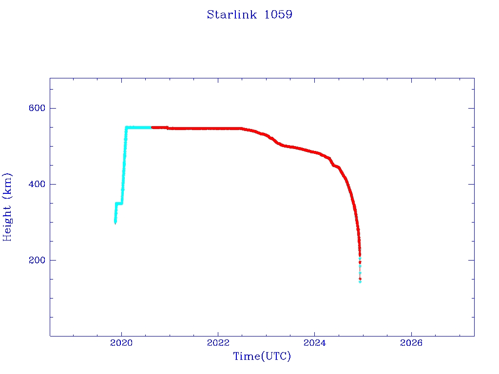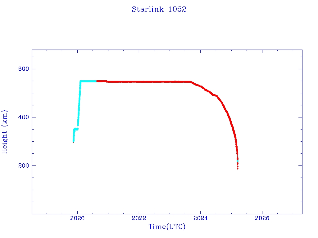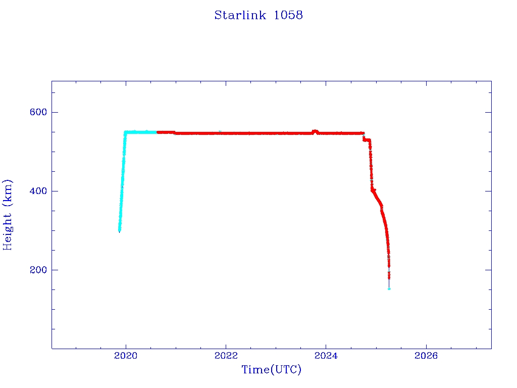 | Starlink 1058 | S44763 | R | 2019 Nov 11 | 2025 Feb 9? | 2025 Apr 4 |  |  |  |