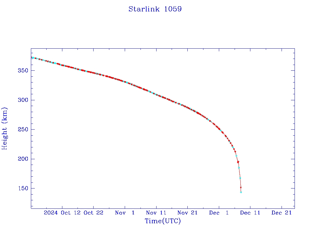 | Starlink 1059 | S44764 | M | 2019 Nov 11 | 2022 Jun 3 | 2024 Dec 8 |  |  |  |
