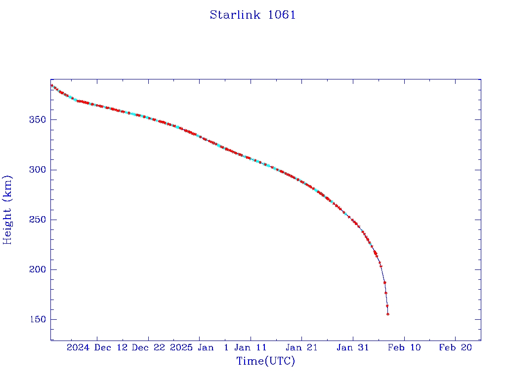 | Starlink 1061 | S44766 | R | 2019 Nov 11 | 2024 Dec 8? | 2025 Feb 7 |  |  |  |
