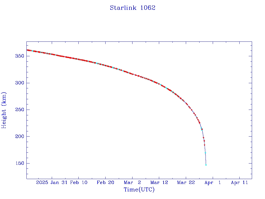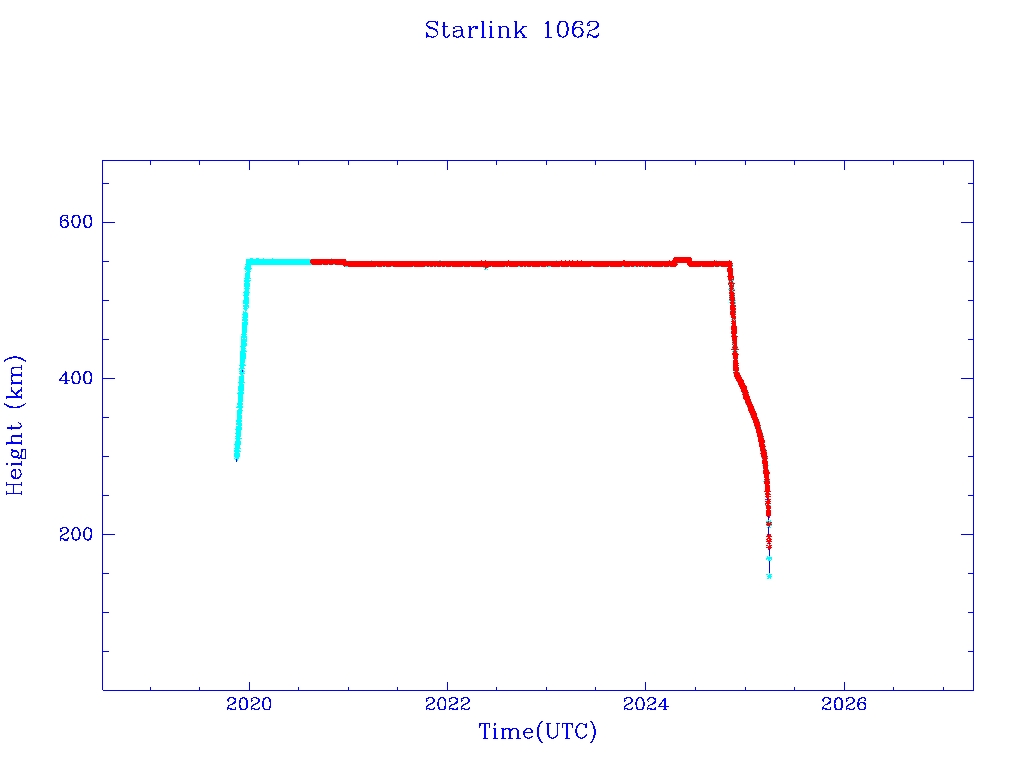 | Starlink 1062 | S44767 | R | 2019 Nov 11 | 2024 Nov 27? | 2025 Mar 29 |  |  |  |