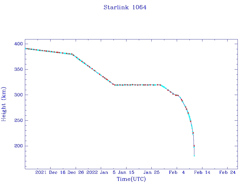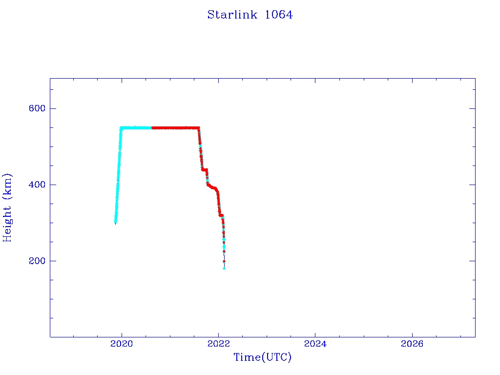 | Starlink 1064 | S44769 | R | 2019 Nov 11 | 2022 Feb 4 | 2022 Feb 11 |  |  |  |