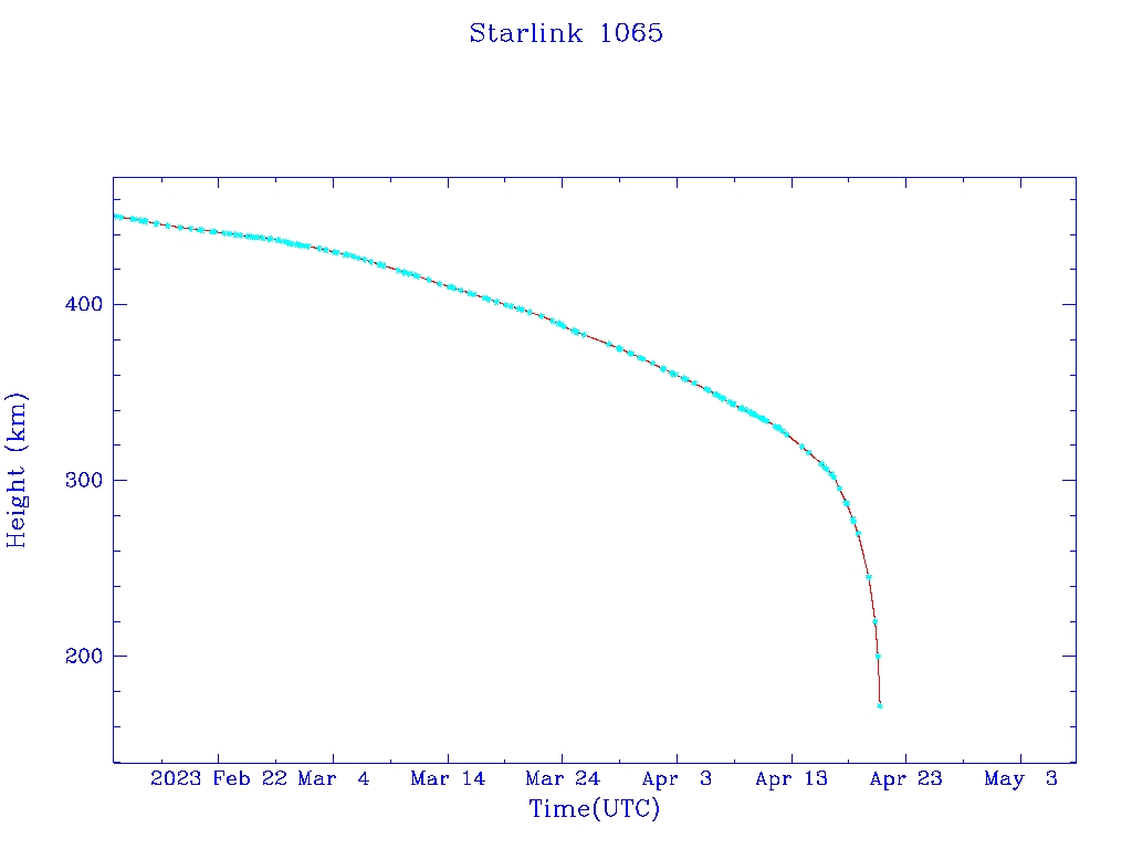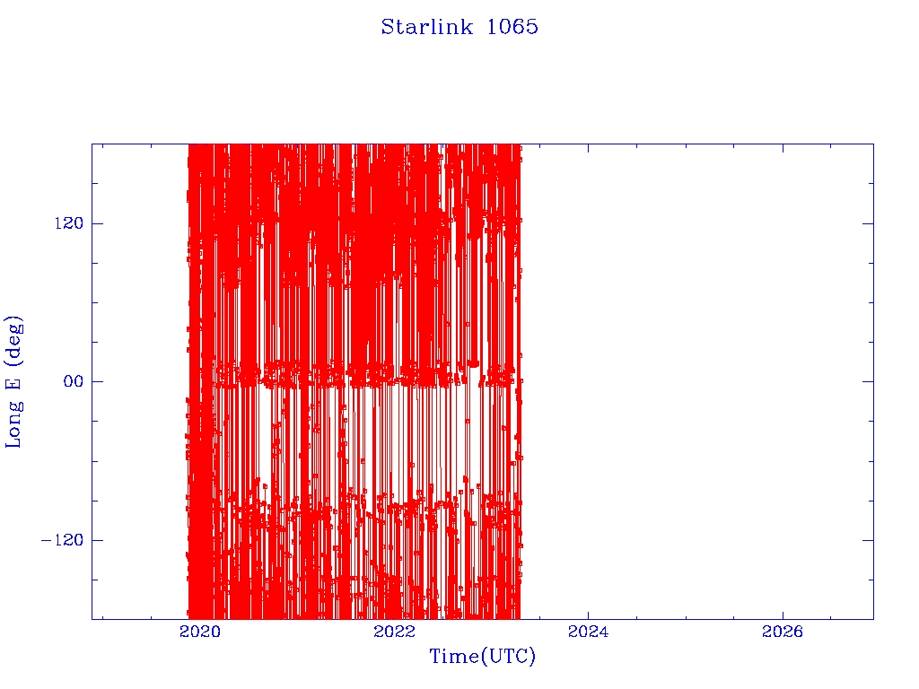 | Starlink 1065 | S44770 | M | 2019 Nov 11 | 2020 Feb 20? | 2023 Apr 20 |  |  |  |
