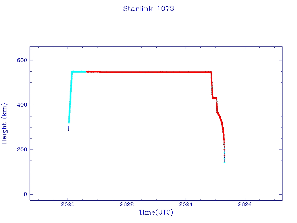 | Starlink 1073 | S44914 | R | 2020 Jan 7 | 2025 Jan 22? | 2025 Apr 22 |  |  |  |
