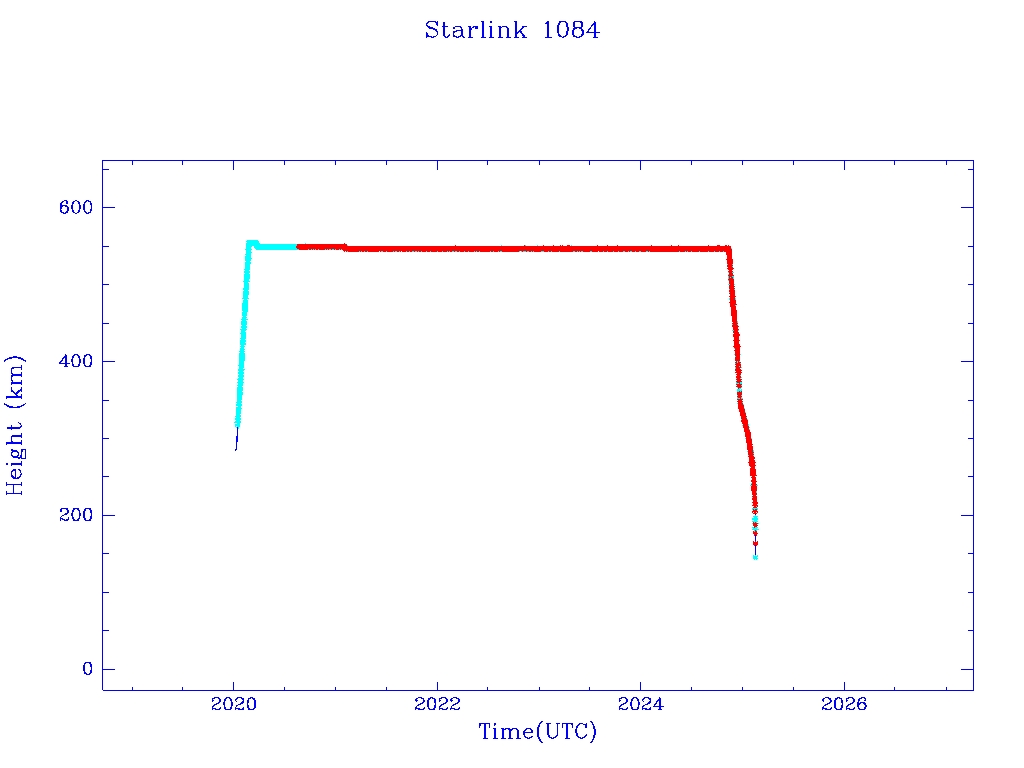 | Starlink 1084 | S44915 | R | 2020 Jan 7 | 2024 Dec 22? | 2025 Feb 14 |  |  |  |