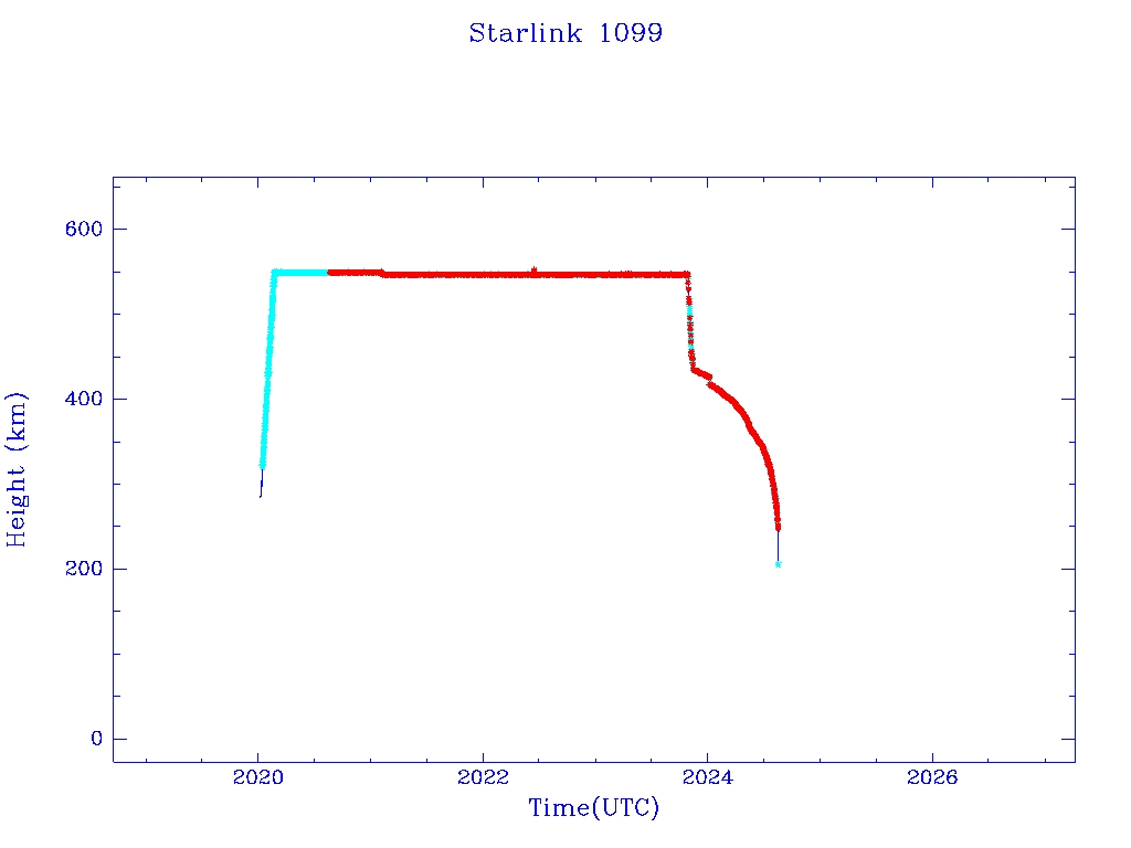 | Starlink 1099 | S44918 | R | 2020 Jan 7 | 2024 Jan 7? | 2024 Aug 16 |  |  |  |