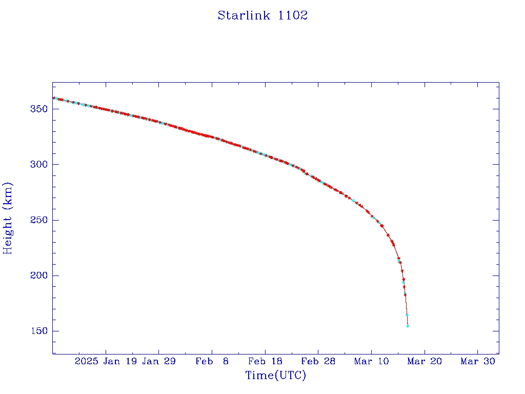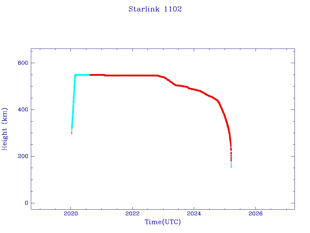 | Starlink 1102 | S44920 | M | 2020 Jan 7 | 2022 Oct 14 | 2025 Mar 17 |  |  |  |