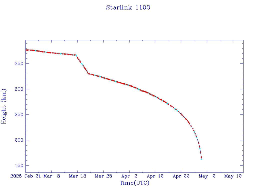 | Starlink 1103 | S44921 | R | 2020 Jan 7 | 2025 Mar 17? | 2025 Apr 29 |  |  |  |