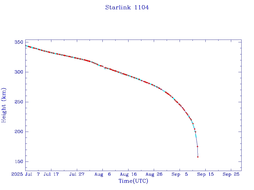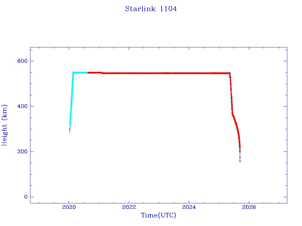 | Starlink 1104 | S44922 | R | 2020 Jan 7 | 2025 Jun 10? | 2025 Sep 12 |  |  |  |