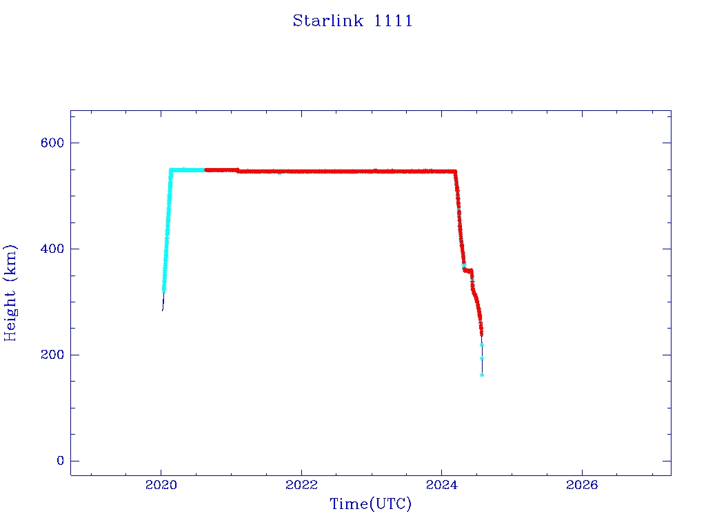 | Starlink 1111 | S44924 | R | 2020 Jan 7 | 2024 Jun 9 | 2024 Jul 27 |  |  |  |