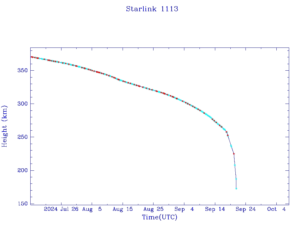 | Starlink 1113 | S44926 | R | 2020 Jan 7 | 2024 Jul 2? | 2024 Sep 21 |  |  |  |