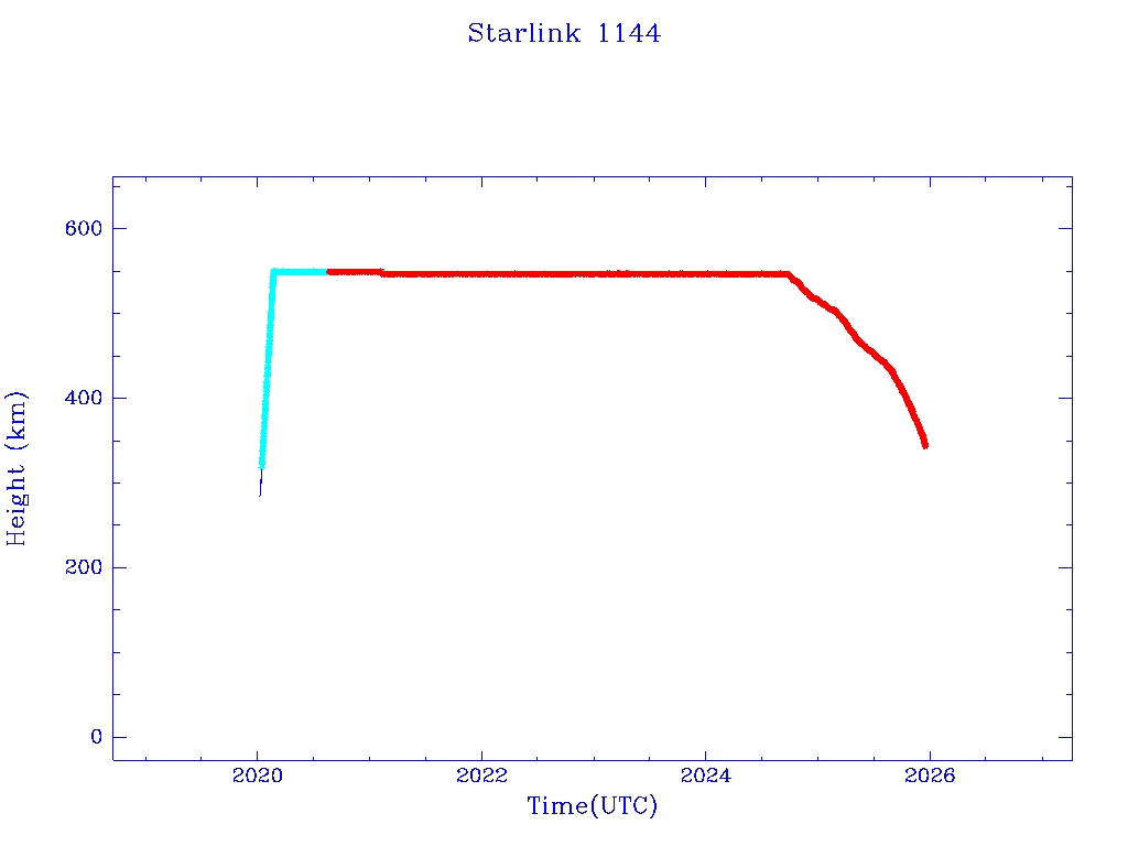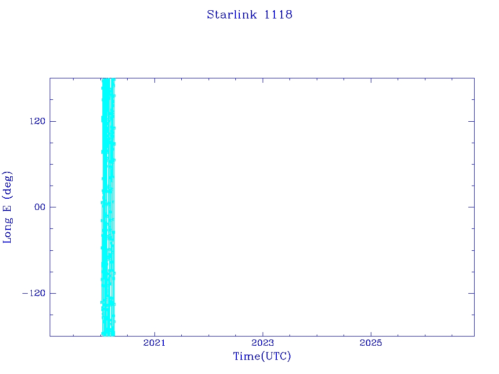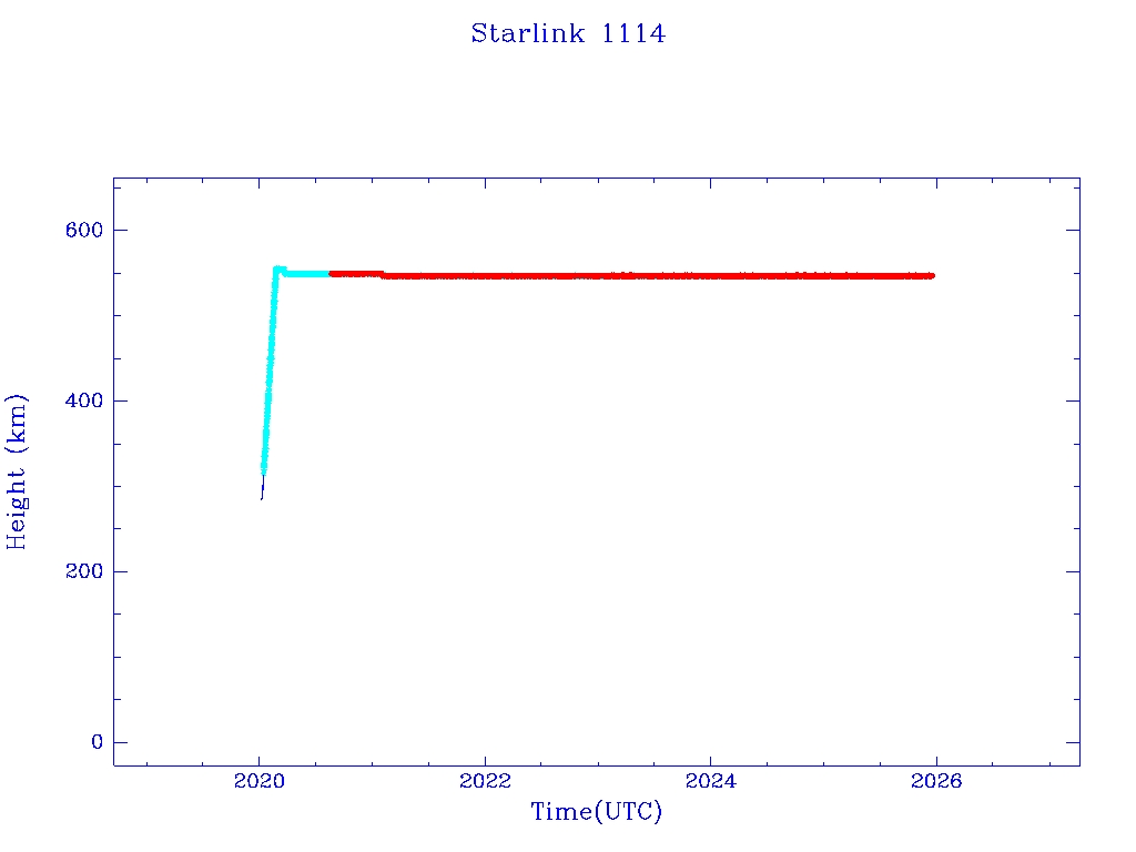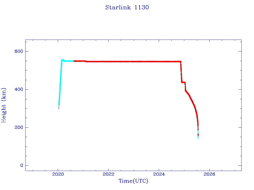 | Starlink 1130 | S44932 | R | 2020 Jan 7 | 2025 Jan 18? | 2025 Jul 20 |  |  |  |
