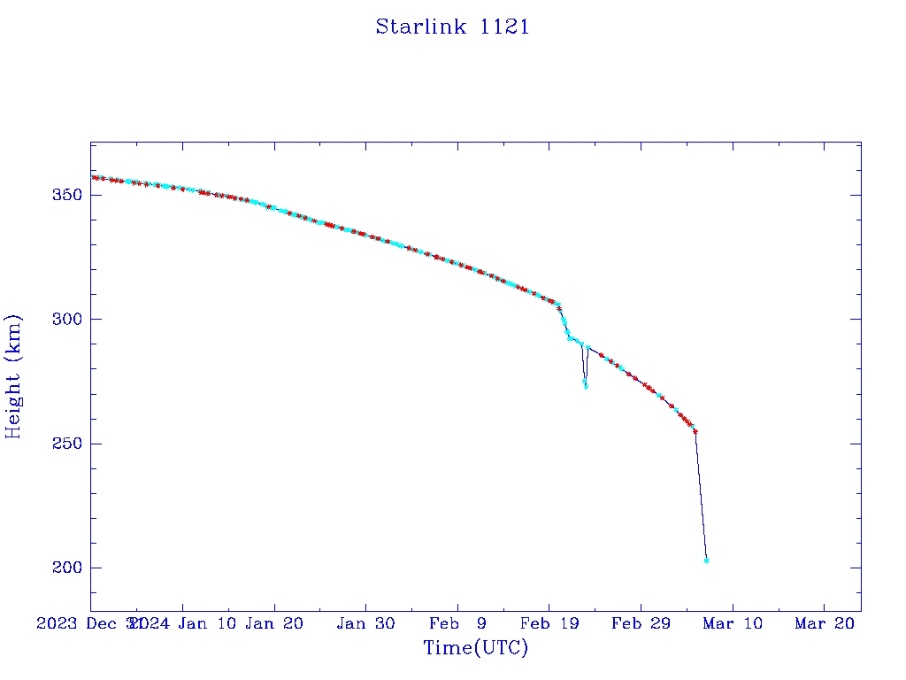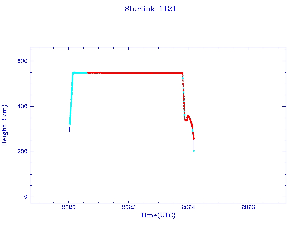 | Starlink 1121 | S44929 | R | 2020 Jan 7 | 2024 Feb 23 | 2024 Mar 7 |  |  |  |