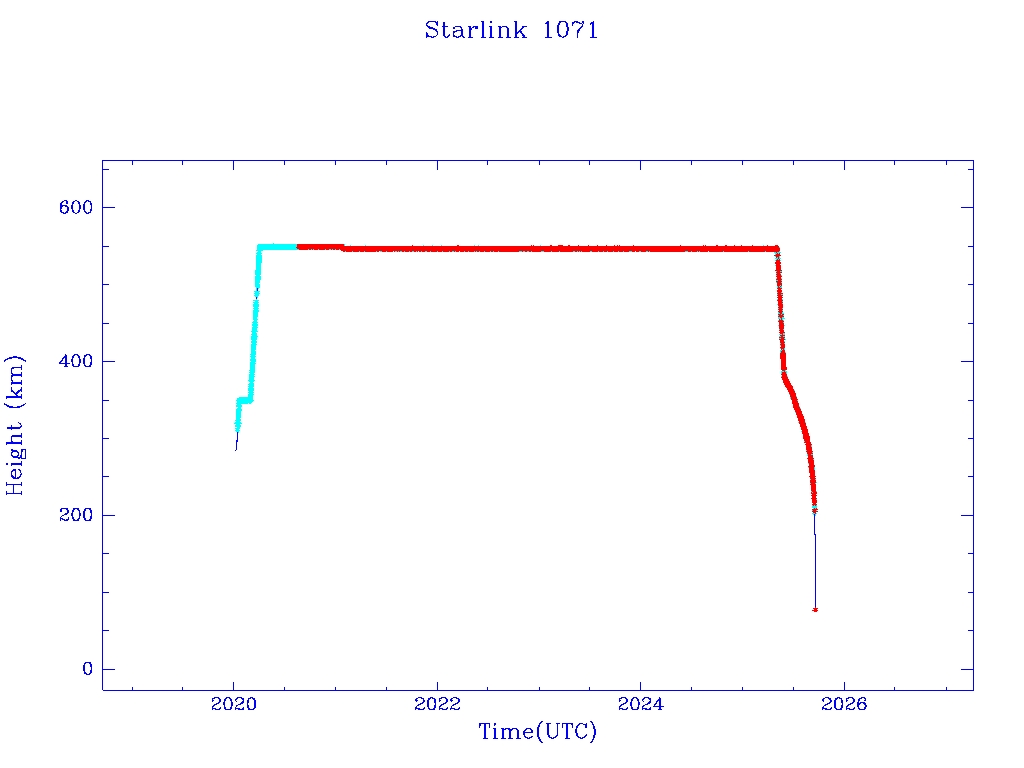 | Starlink 1071 | S44934 | R | 2020 Jan 7 | 2025 May 29? | 2025 Sep 16 |  |  |  |