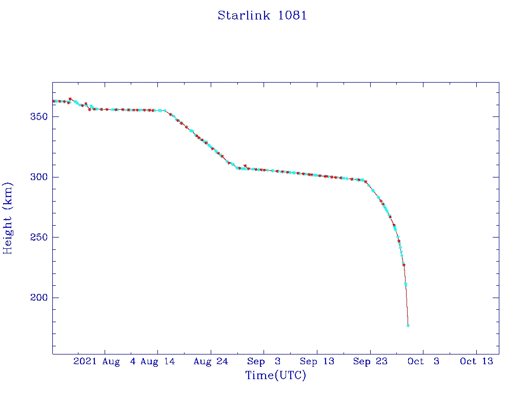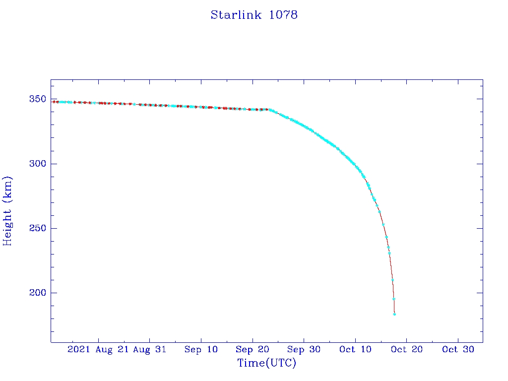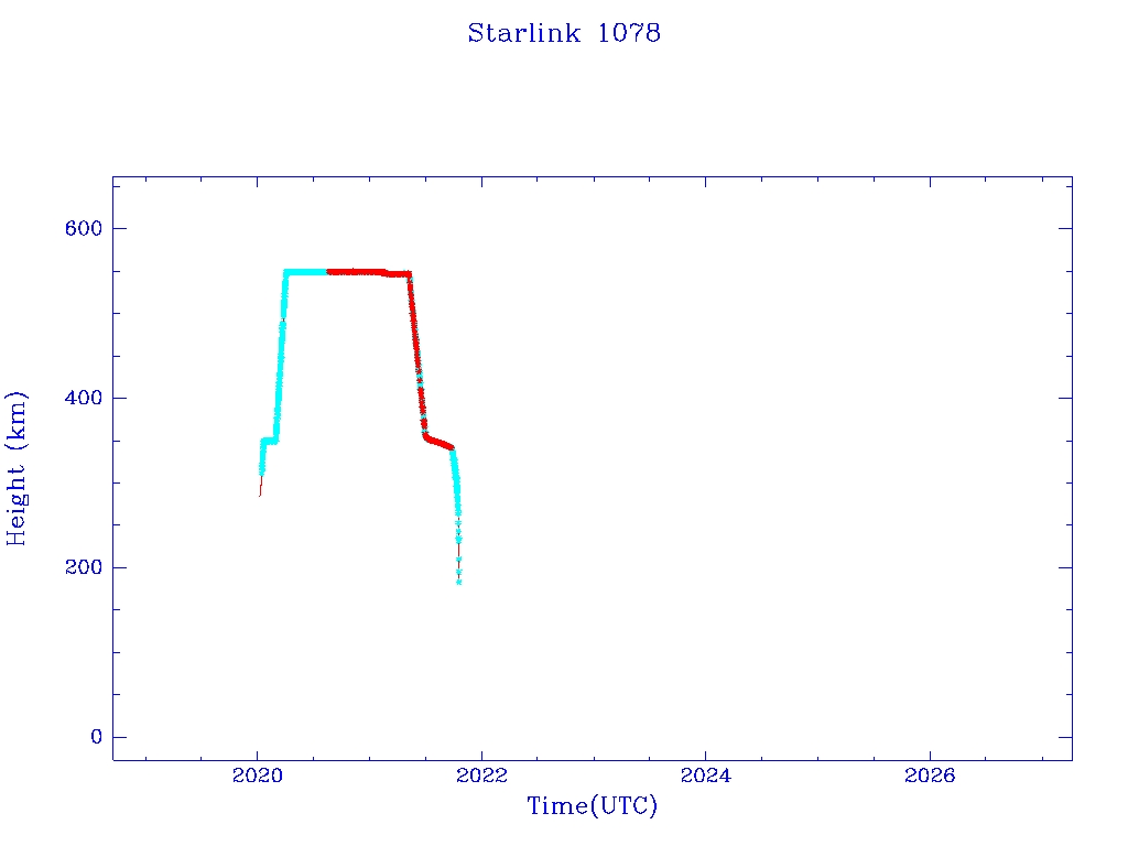| Starlink 1078 | S44936 | R | 2020 Jan 7 | 2021 Sep 23? | 2021 Oct 17 |  |  |  |