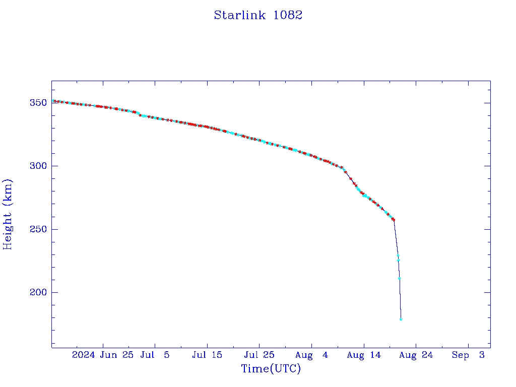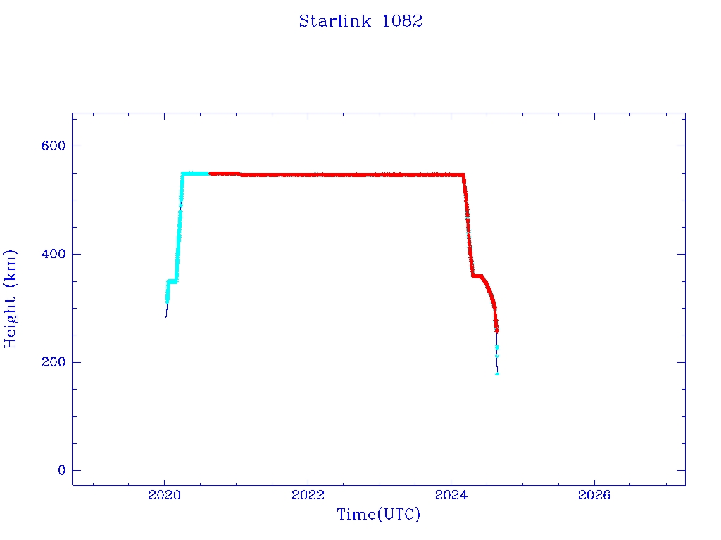 | Starlink 1082 | S44938 | R | 2020 Jan 7 | 2024 Aug 20 | 2024 Aug 21 |  |  |  |