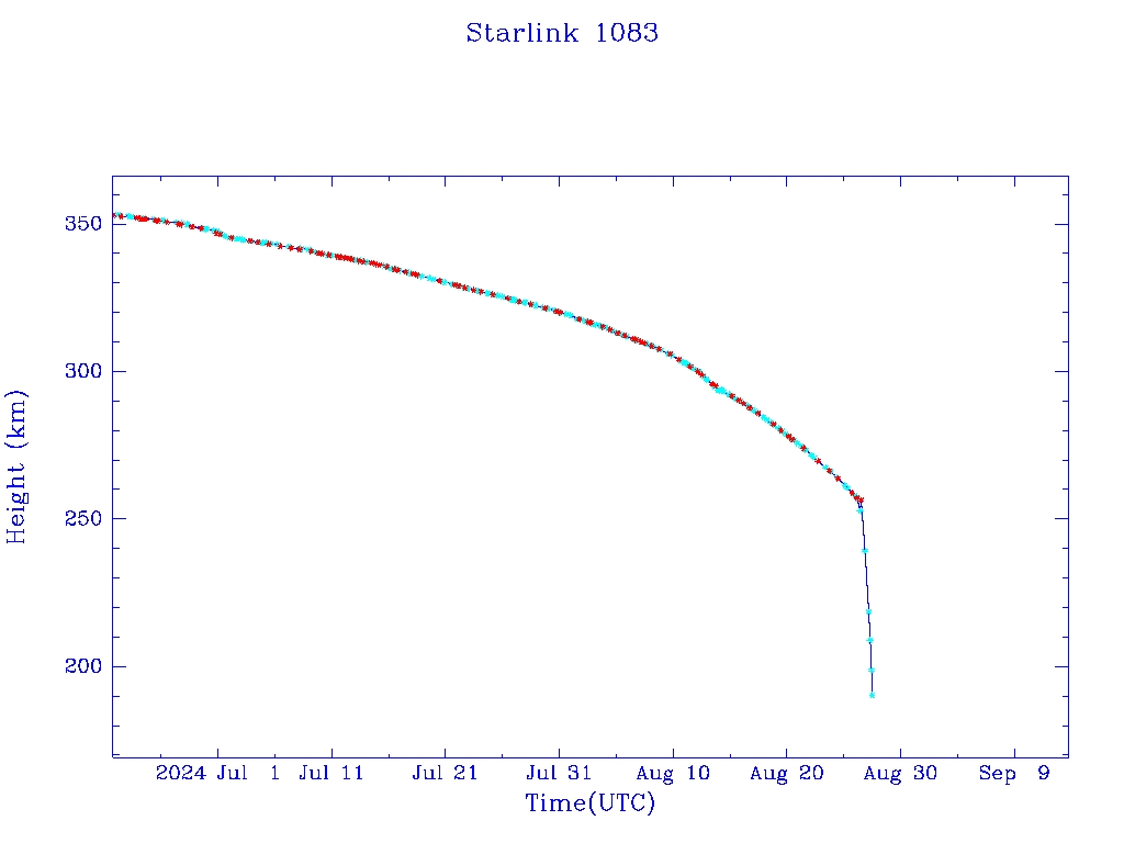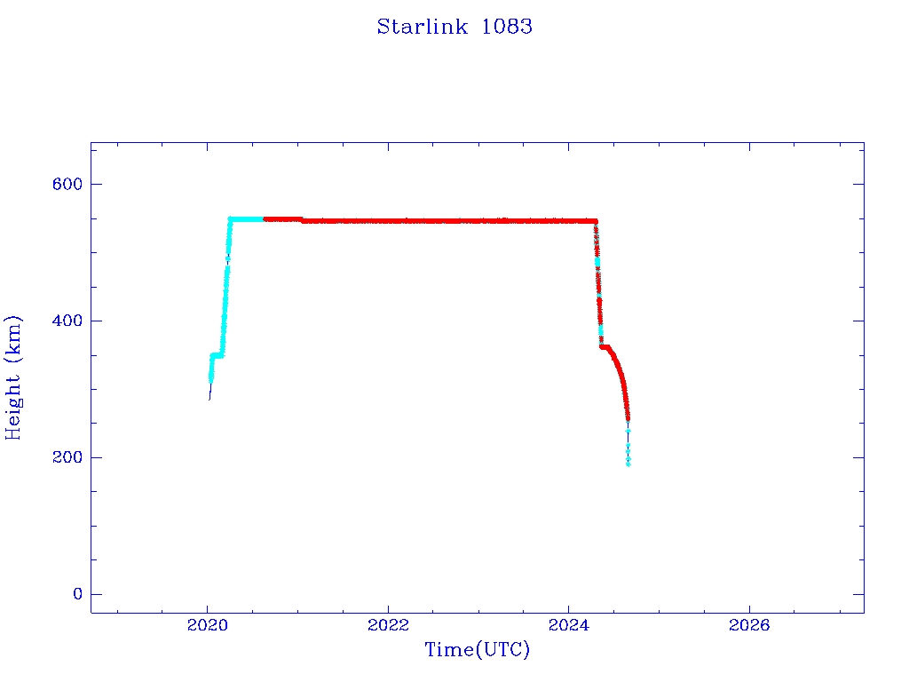 | Starlink 1083 | S44939 | R | 2020 Jan 7 | 2024 Jun 7? | 2024 Aug 27 |  |  |  |