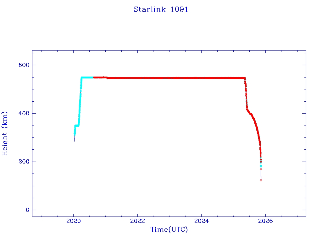 | Starlink 1091 | S44940 | R | 2020 Jan 7 | 2025 Oct 31? | 2025 Nov 9 |  |  |  |