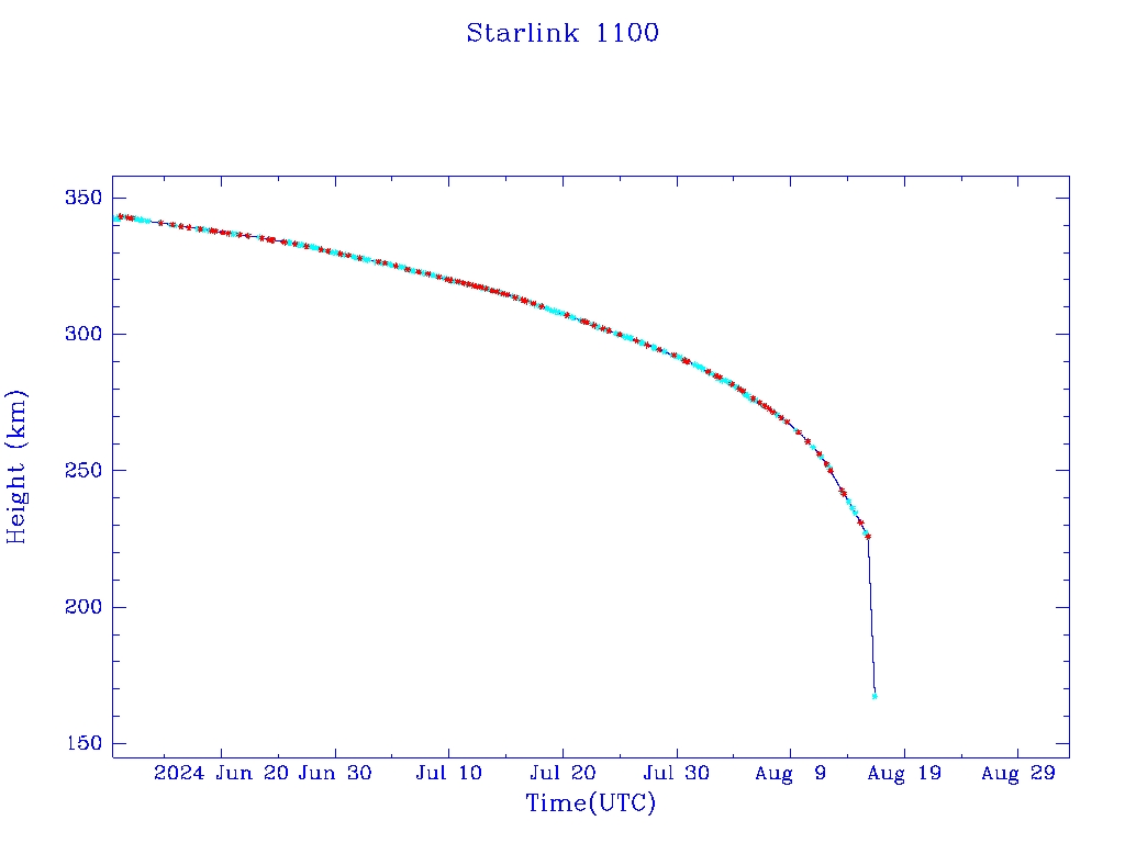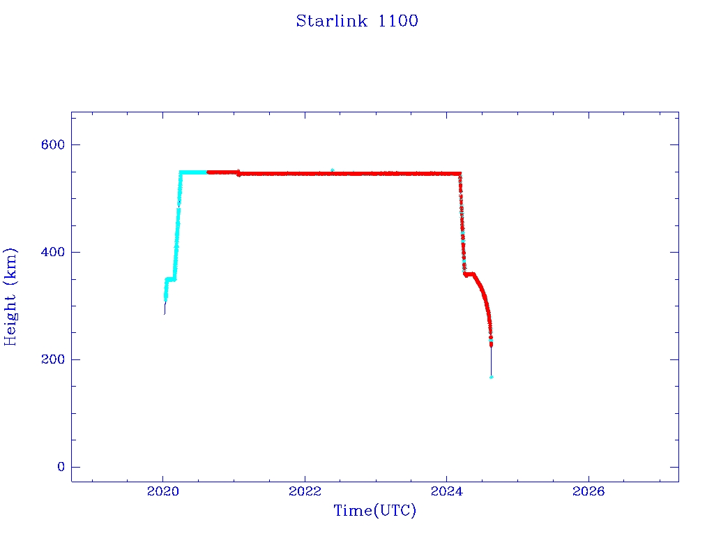 | Starlink 1100 | S44943 | R | 2020 Jan 7 | 2024 May 16 | 2024 Aug 16 |  |  |  |