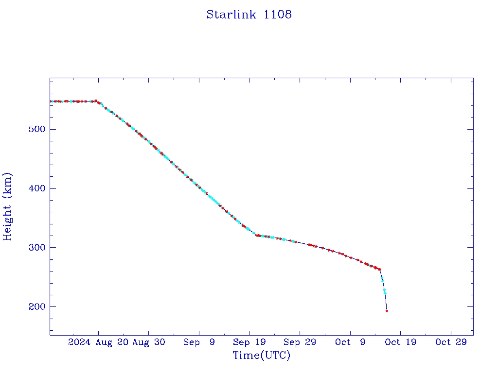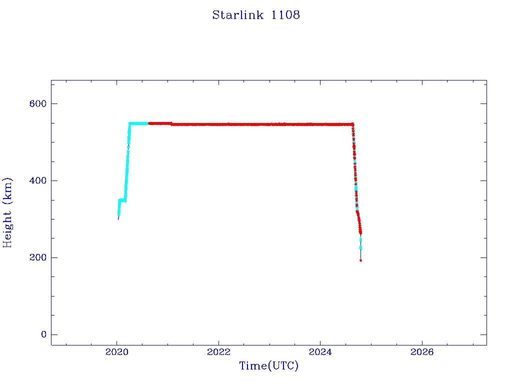 | Starlink 1108 | S44944 | R | 2020 Jan 7 | 2024 Oct 15? | 2024 Oct 16 |  |  |  |