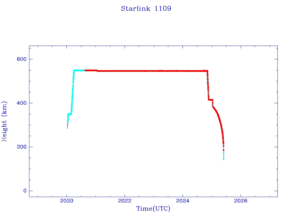 | Starlink 1109 | S44945 | R | 2020 Jan 7 | 2025 Jan 12? | 2025 May 29 |  |  |  |
