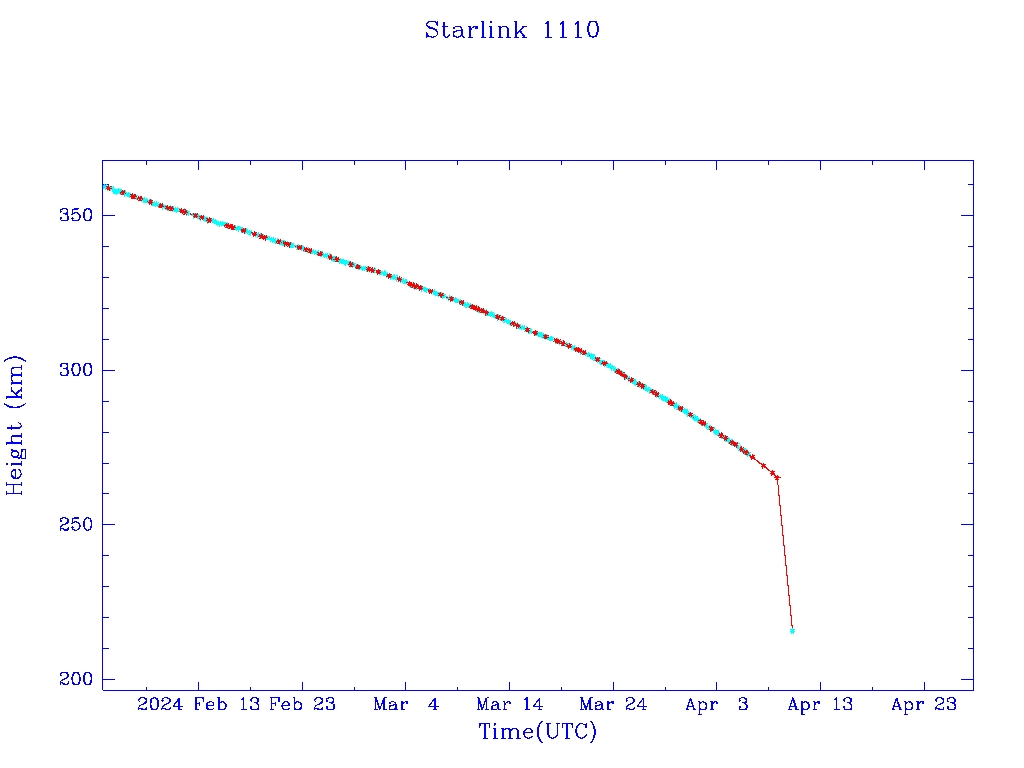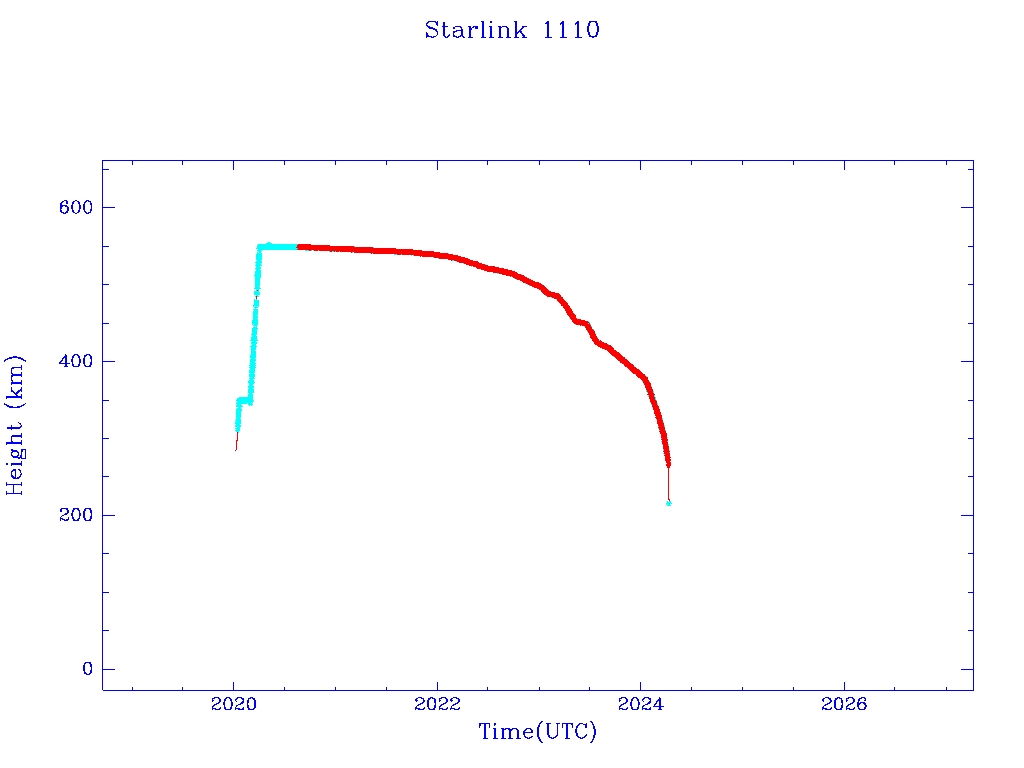 | Starlink 1110 | S44946 | M | 2020 Jan 7 | 2020 Jul 5? | 2024 Apr 10 |  |  |  |