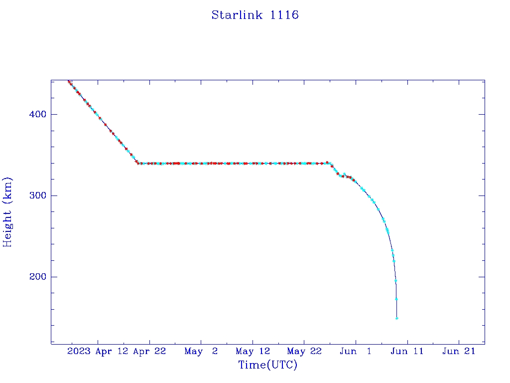 | Starlink 1116 | S44947 | R | 2020 Jan 7 | 2023 May 29 | 2023 Jun 8 |  |  |  |