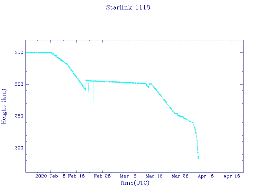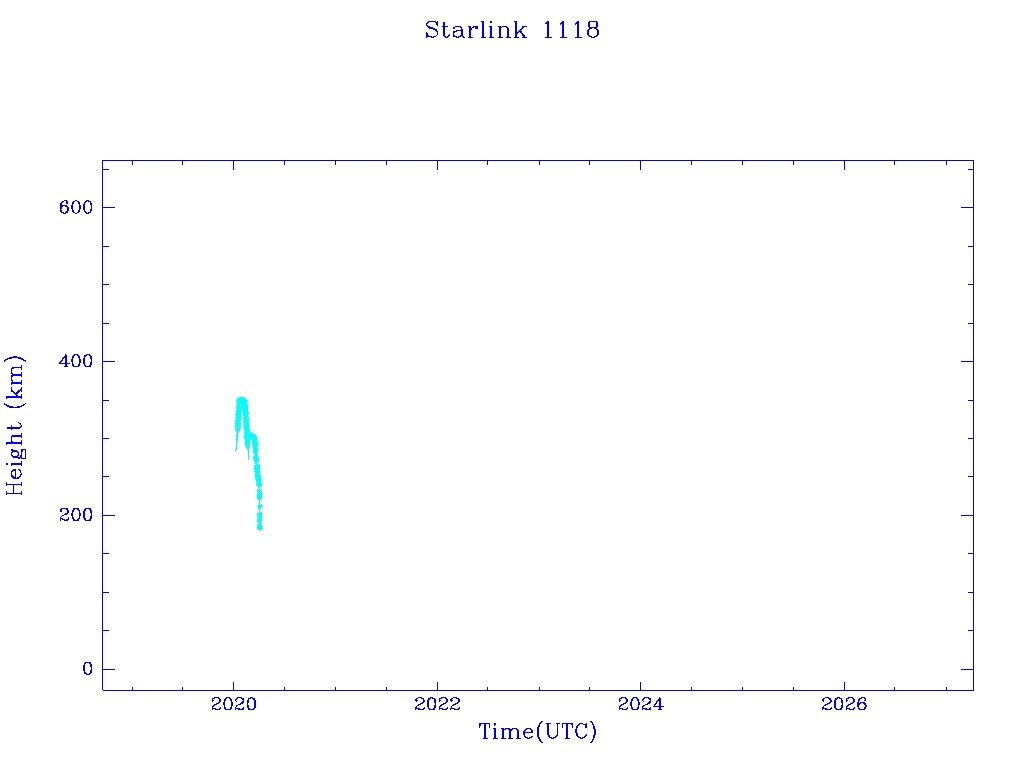 | Starlink 1118 | S44948 | F | 2020 Jan 7 | 2020 Apr 2 | 2020 Apr 2 |  |  |  |