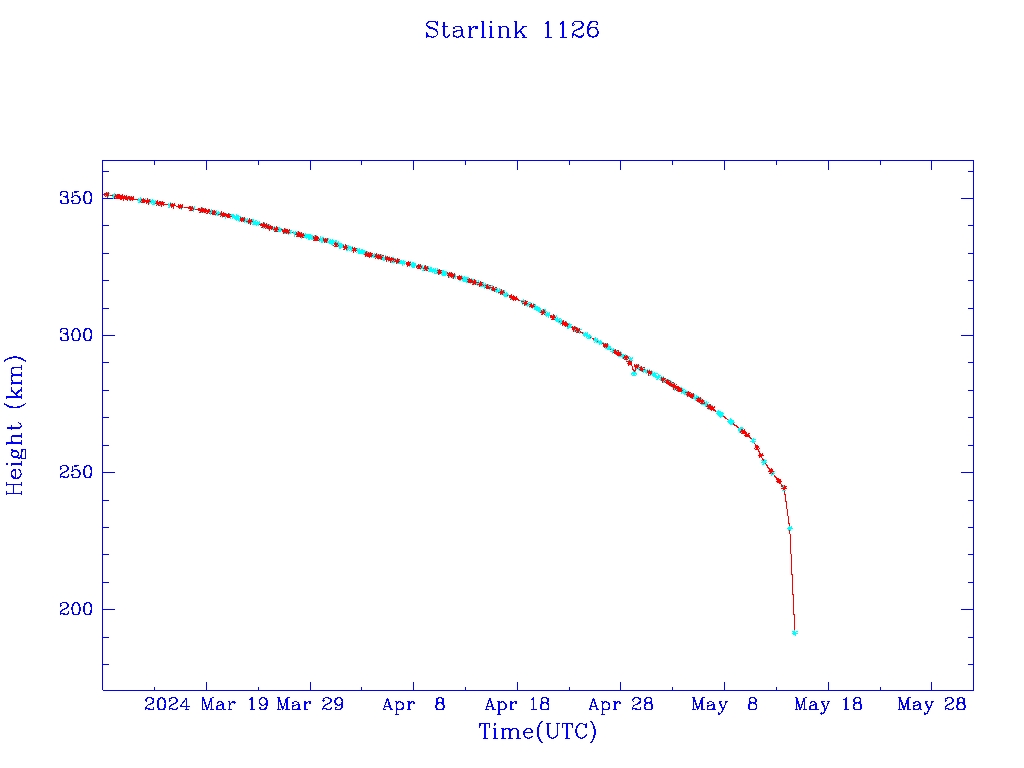 | Starlink 1126 | S44951 | M | 2020 Jan 7 | 2020 Jun 1 | 2024 May 15 |  |  |  |