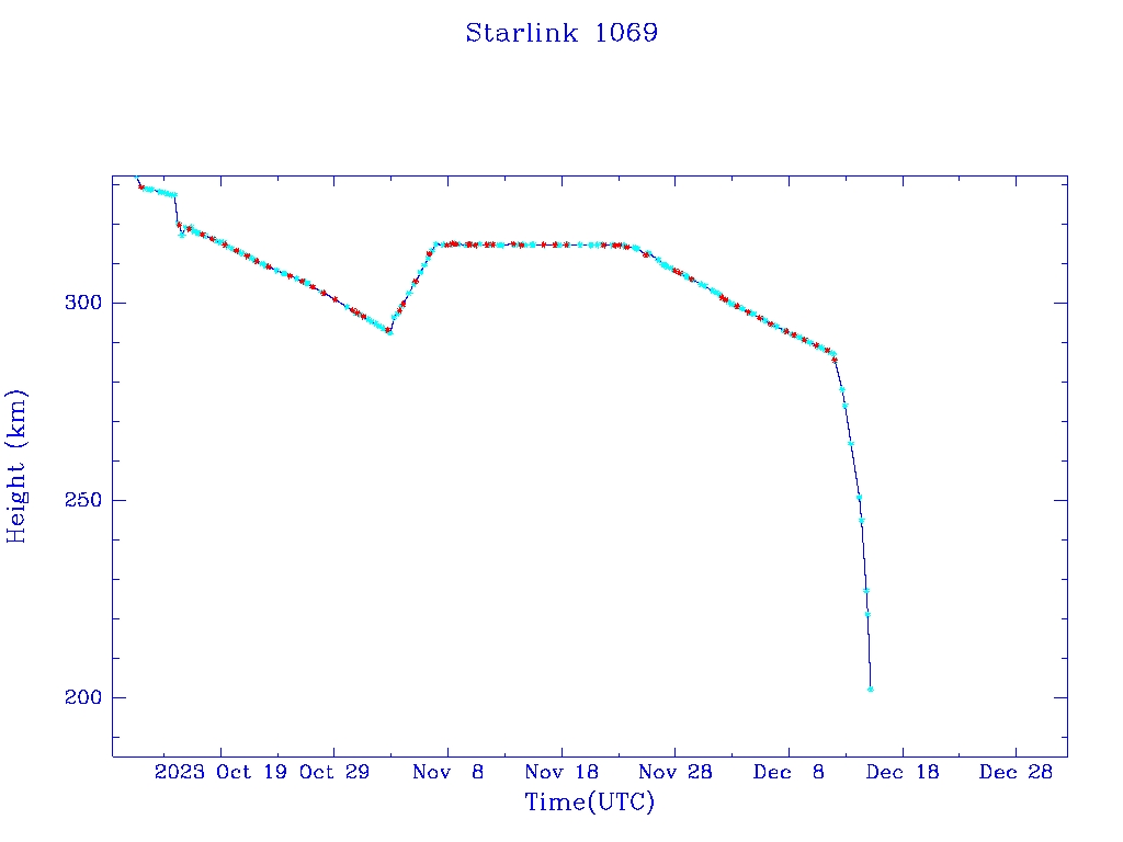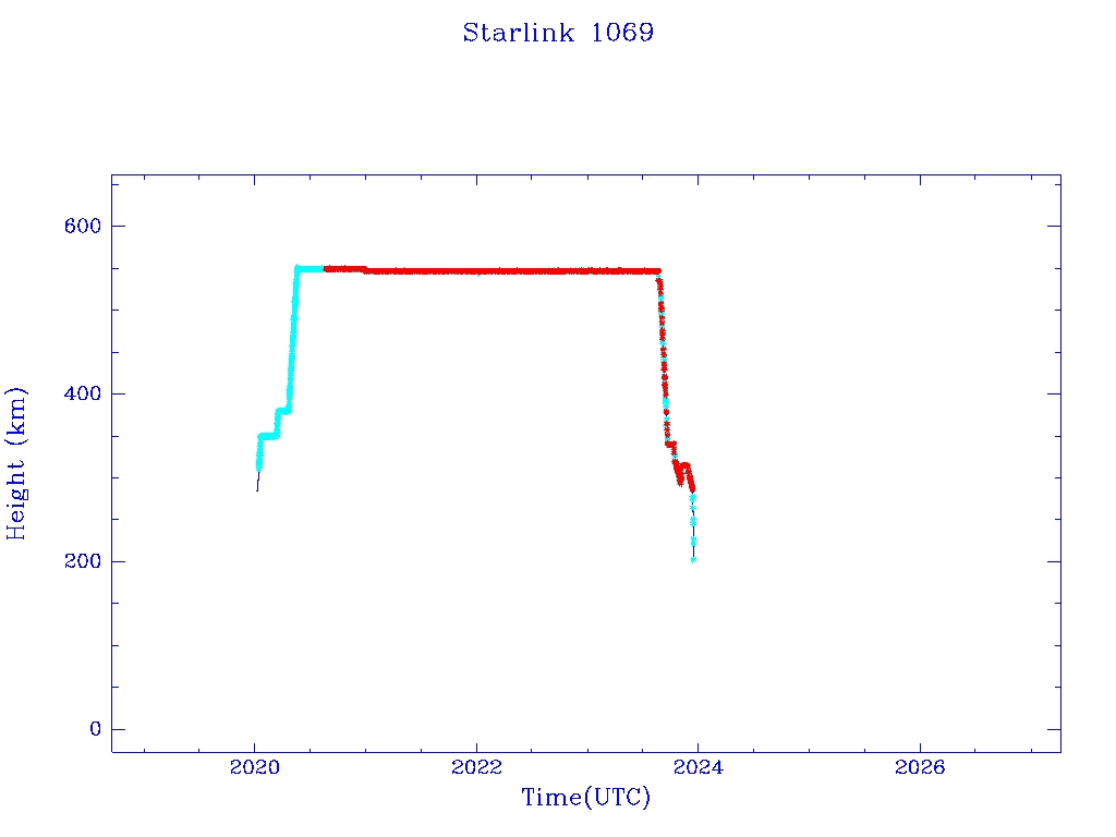 | Starlink 1069 | S44955 | R | 2020 Jan 7 | 2023 Dec 11 | 2023 Dec 15 |  |  |  |
