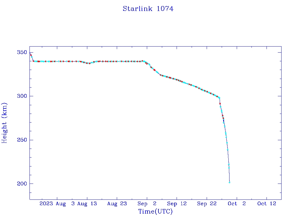 | Starlink 1074 | S44957 | R | 2020 Jan 7 | 2023 Sep 26 | 2023 Sep 29 |  |  |  |