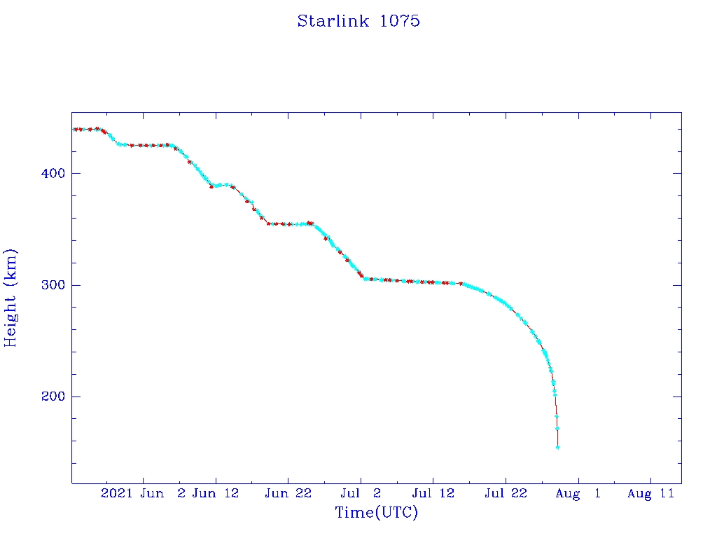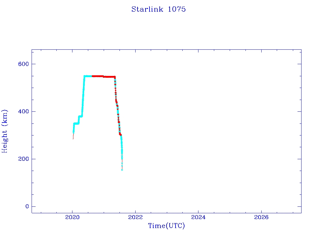 | Starlink 1075 | S44958 | R | 2020 Jan 7 | 2021 Jul 16? | 2021 Jul 29 |  |  |  |