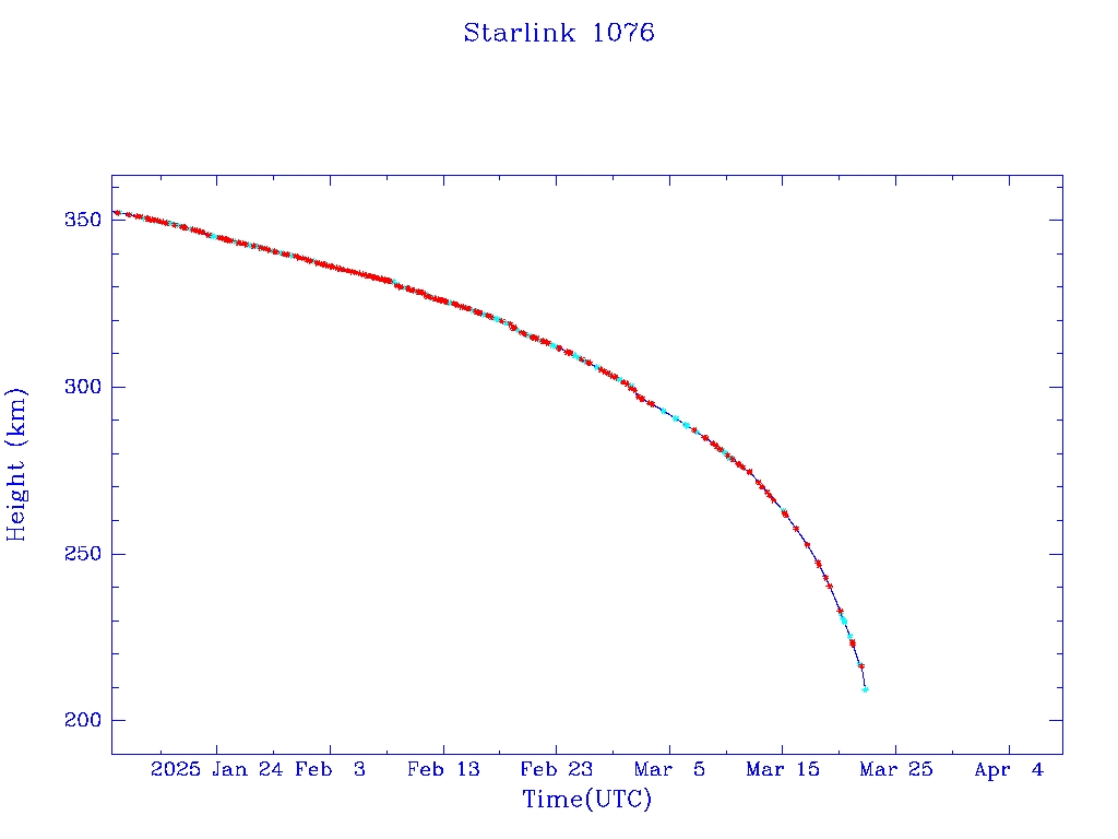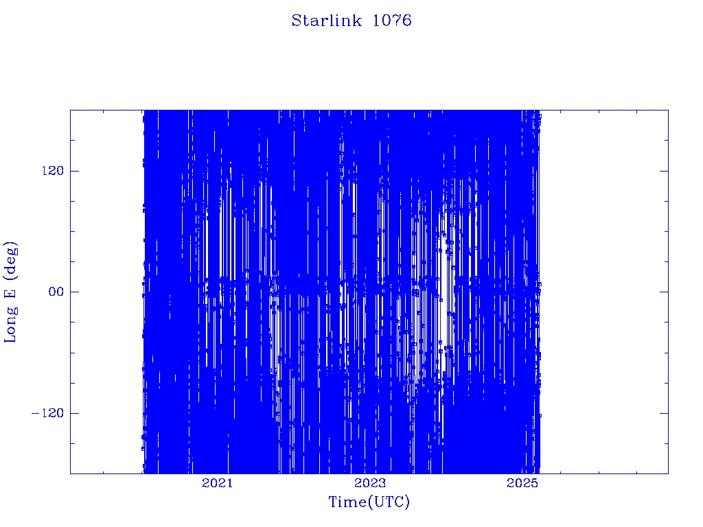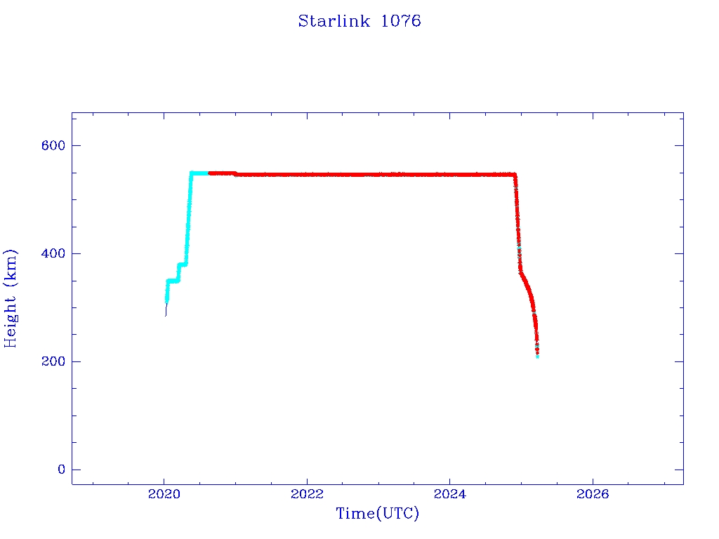 | Starlink 1076 | S44959 | R | 2020 Jan 7 | 2024 Dec 26? | 2025 Mar 22 |  |  |  |