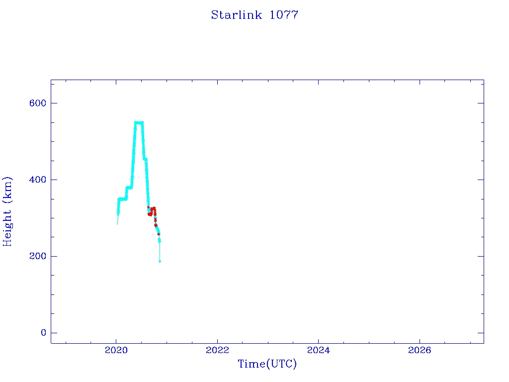 | Starlink 1077 | S44960 | R | 2020 Jan 7 | 2020 Nov 9? | 2020 Nov 9 |  |  |  |