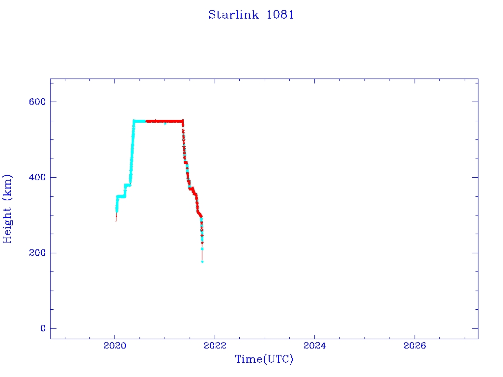 | Starlink 1081 | S44962 | R | 2020 Jan 7 | 2021 Sep 22? | 2021 Sep 30 |  |  |  |