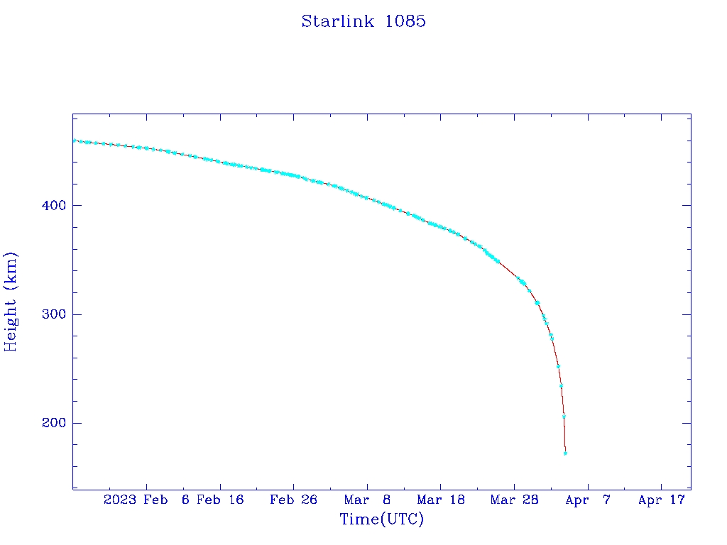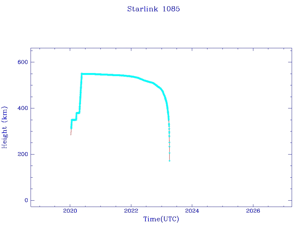| Starlink 1085 | S44963 | M | 2020 Jan 7 | 2020 Aug 6? | 2023 Apr 4 |  |  |  |