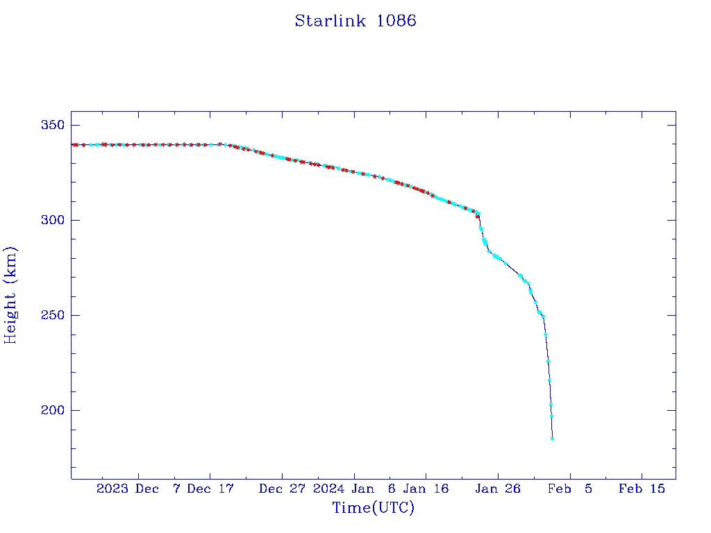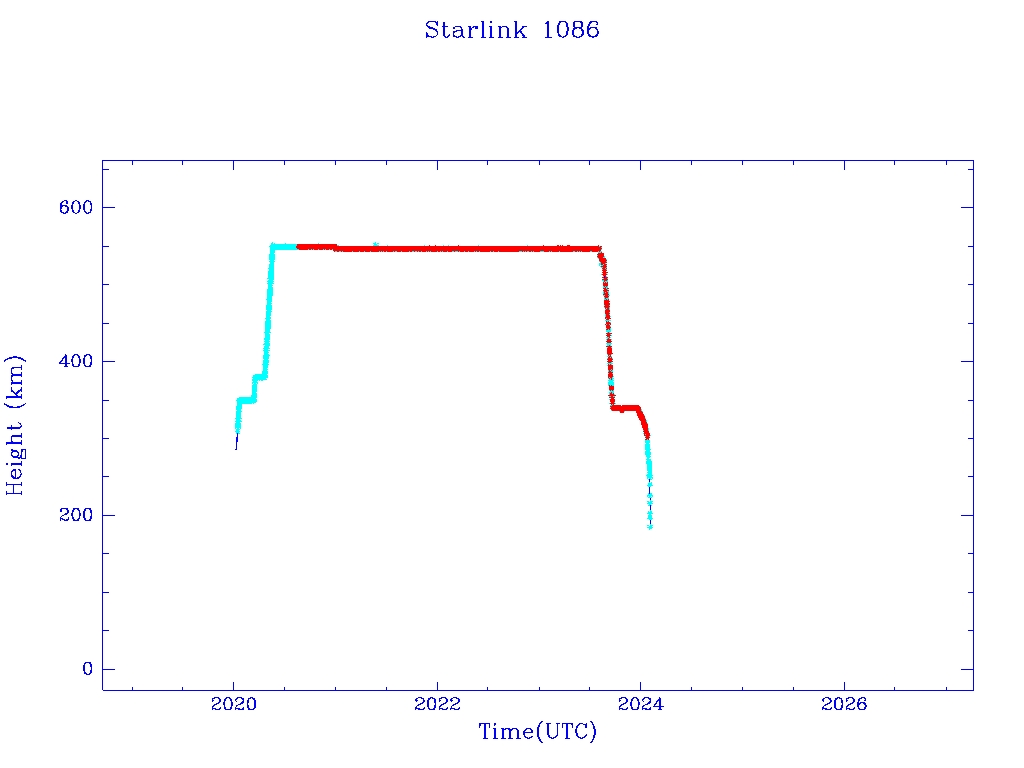 | Starlink 1086 | S44964 | R | 2020 Jan 7 | 2024 Jan 24 | 2024 Feb 2 |  |  |  |