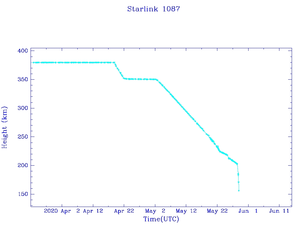 | Starlink 1087 | S44965 | F | 2020 Jan 7 | 2020 May 29 | 2020 May 29 |  |  |  |