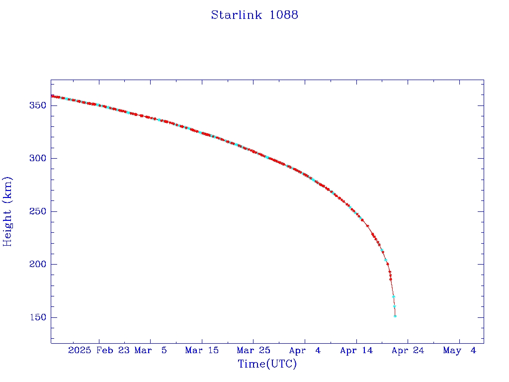 | Starlink 1088 | S44966 | M | 2020 Jan 7 | 2023 Jan 22 | 2025 Apr 21 |  |  |  |