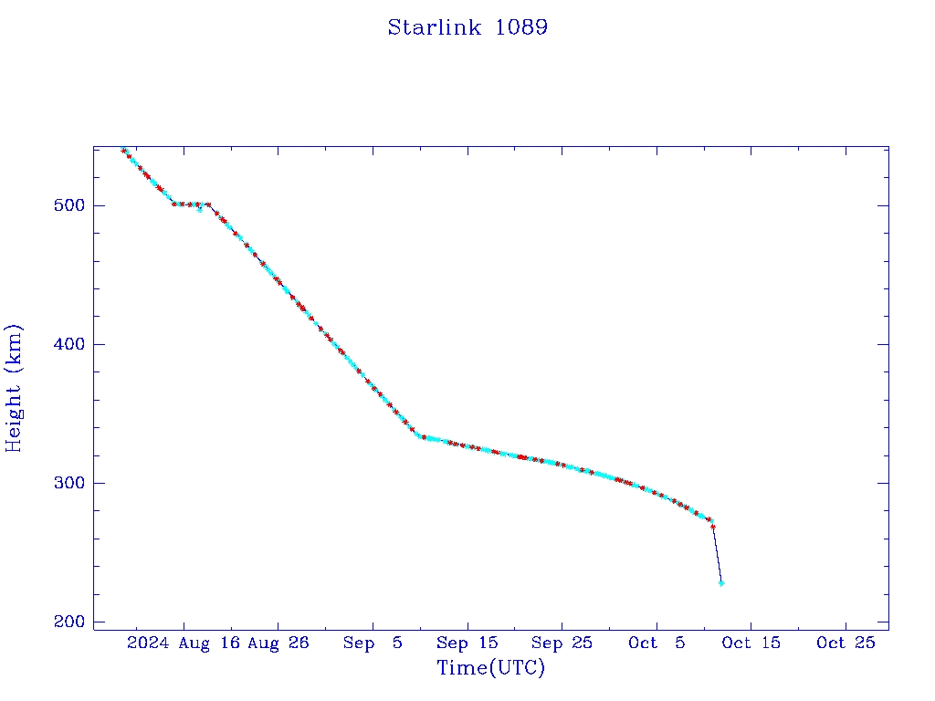 | Starlink 1089 | S44967 | R | 2020 Jan 7 | 2024 Oct 11 | 2024 Oct 12 |  |  |  |