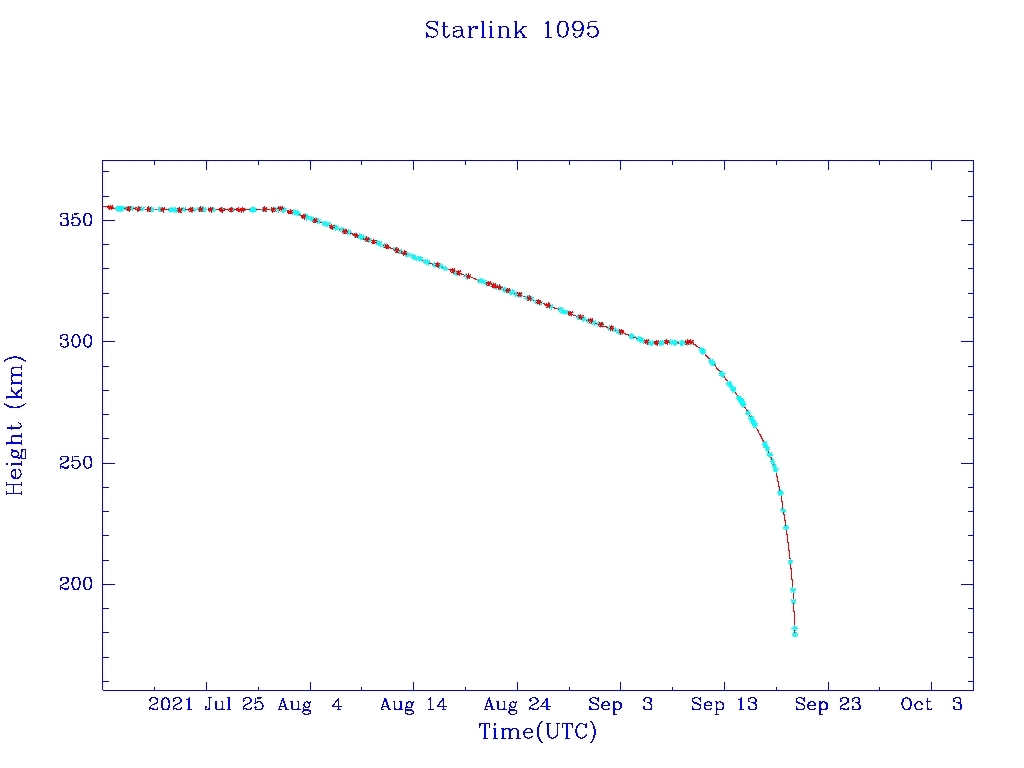 | Starlink 1095 | S44971 | R | 2020 Jan 7 | 2021 Sep 10 | 2021 Sep 20 |  |  |  |
