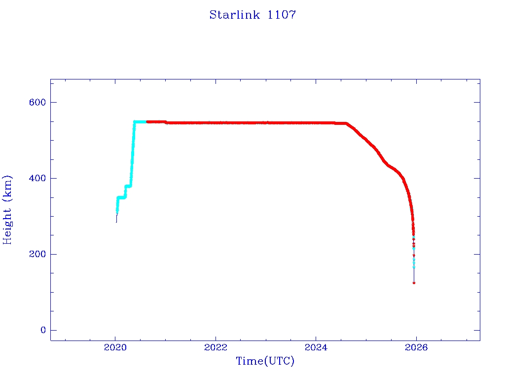 | Starlink 1107 | S44972 | L | 2020 Jan 7 | 2025 Oct 3? | 2025 Dec 13 |  |  |  |