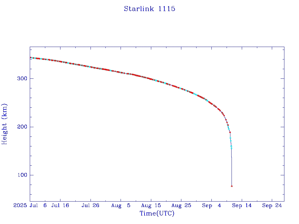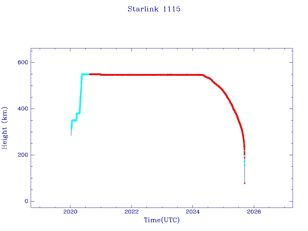 | Starlink 1115 | S44973 | R | 2020 Jan 7 | 2024 Oct 13? | 2025 Sep 11 |  |  |  |