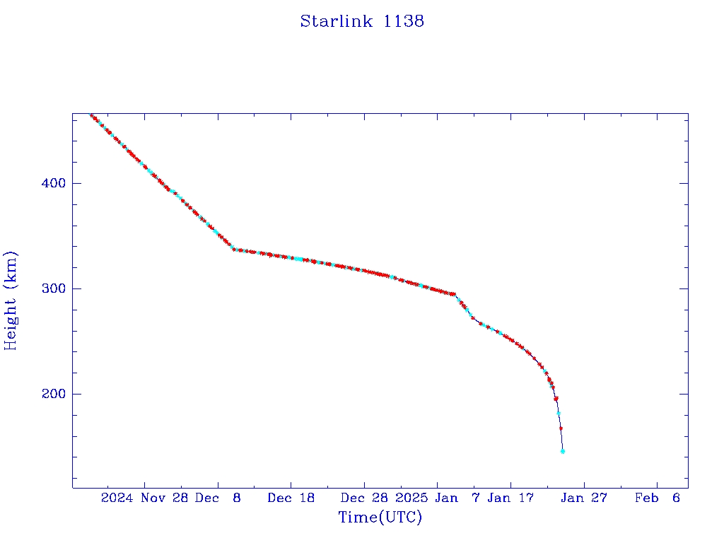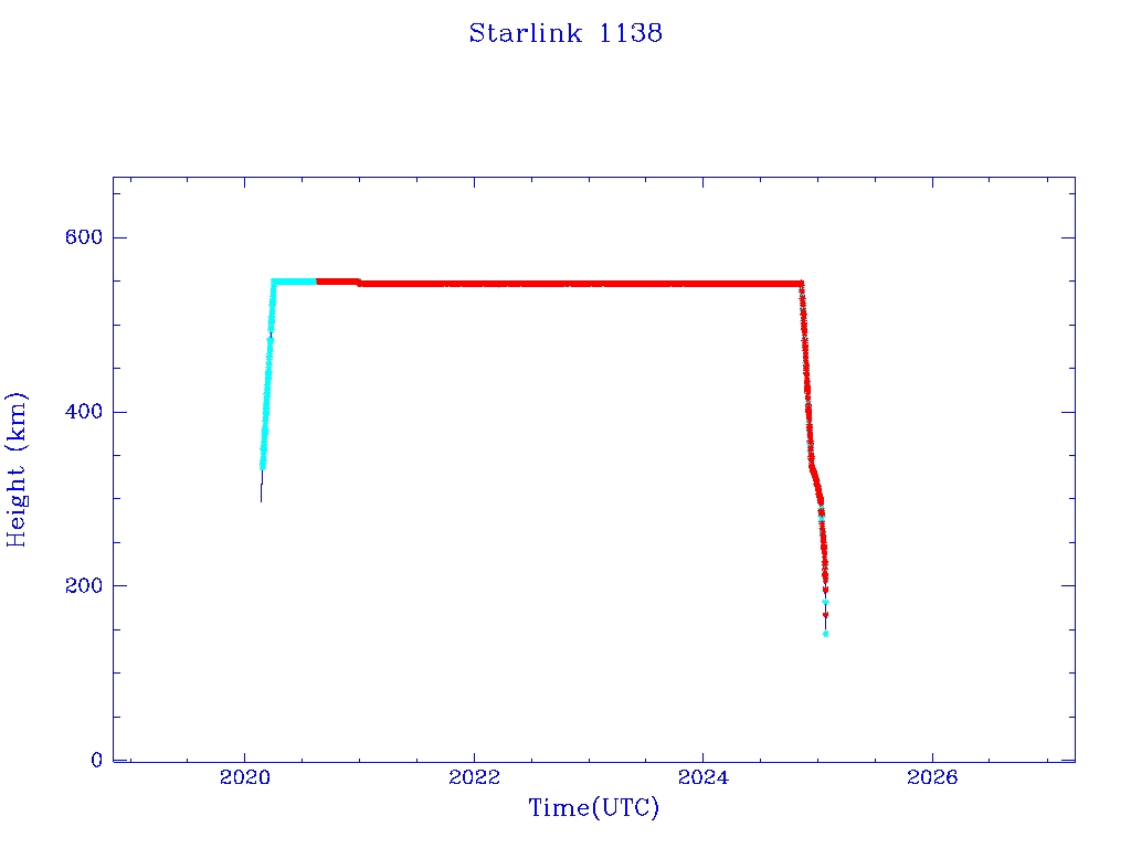 | Starlink 1138 | S45178 | R | 2020 Feb 17 | 2025 Jan 11? | 2025 Jan 24 |  |  |  |