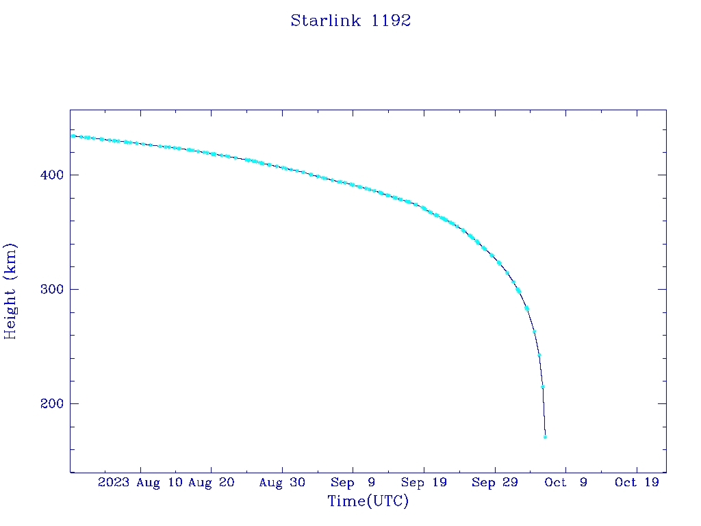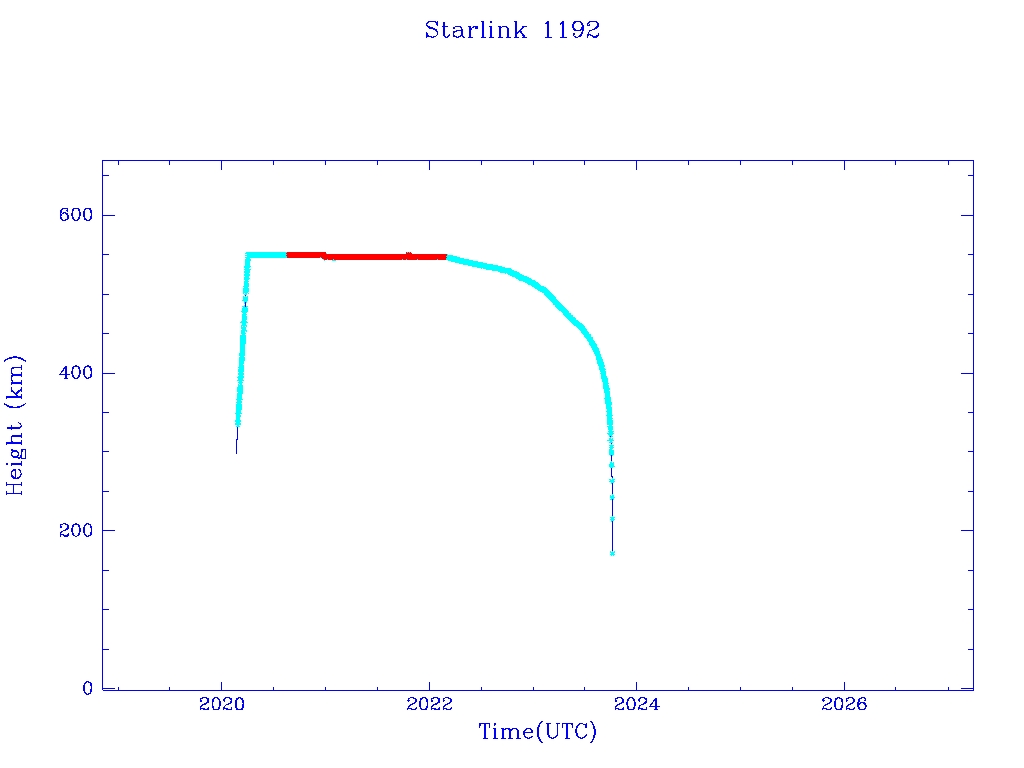 | Starlink 1192 | S45180 | M | 2020 Feb 17 | 2022 Feb 22? | 2023 Oct 6 |  |  |  |