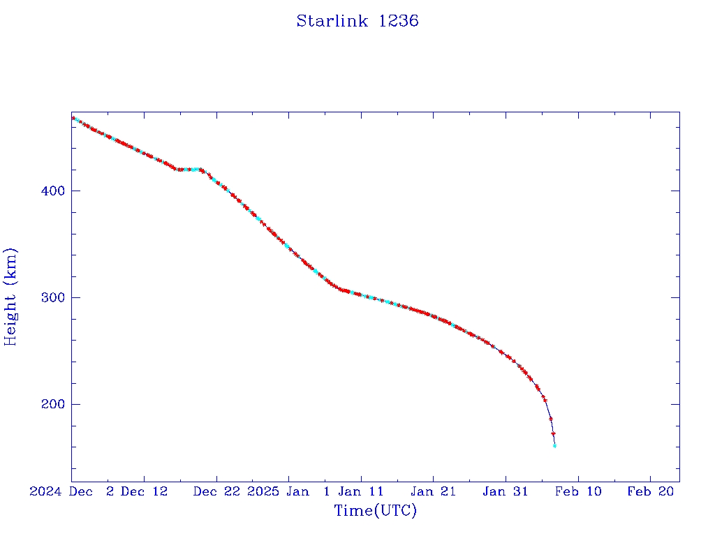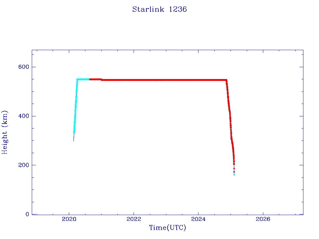 | Starlink 1236 | S45191 | R | 2020 Feb 17 | 2025 Jan 8? | 2025 Feb 7 |  |  |  |