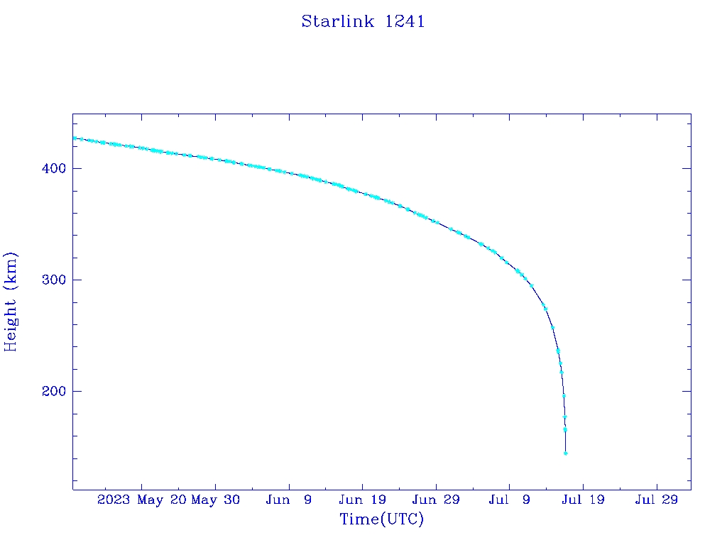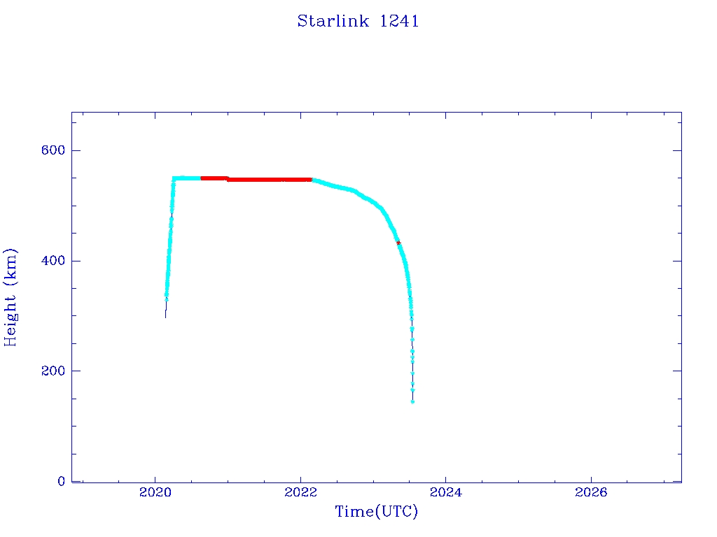 | Starlink 1241 | S45195 | M | 2020 Feb 17 | 2022 Feb 19? | 2023 Jul 16 |  |  |  |